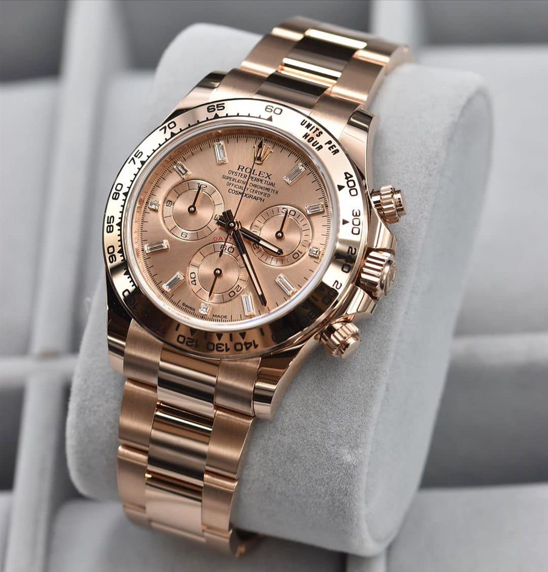 Bên cạnh Rolex Datejust thì Rolex Cosmograph Daytona cũng là một dòng sản phẩm cao cấp được đông đảo khách hàng đón nhận nồng nhiệt. Xuất phát điểm là những chiếc đồng hồ sản xuất dành riêng cho tay đua. Tuy nhiên, với các phiên bản sử dụng vàng nguyên khối và đính đá quý sau này thì nó đã trở nên phổ biến và được rất nhiều khách hàng yêu mến.