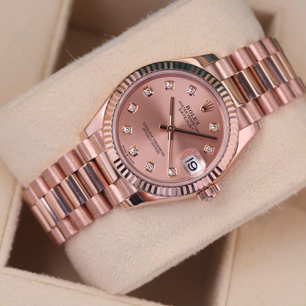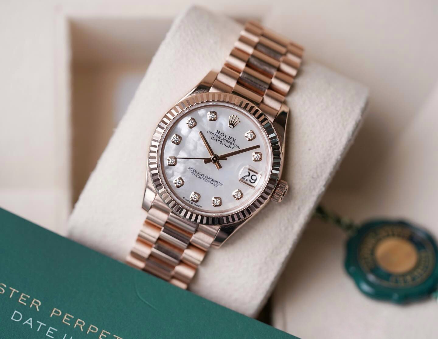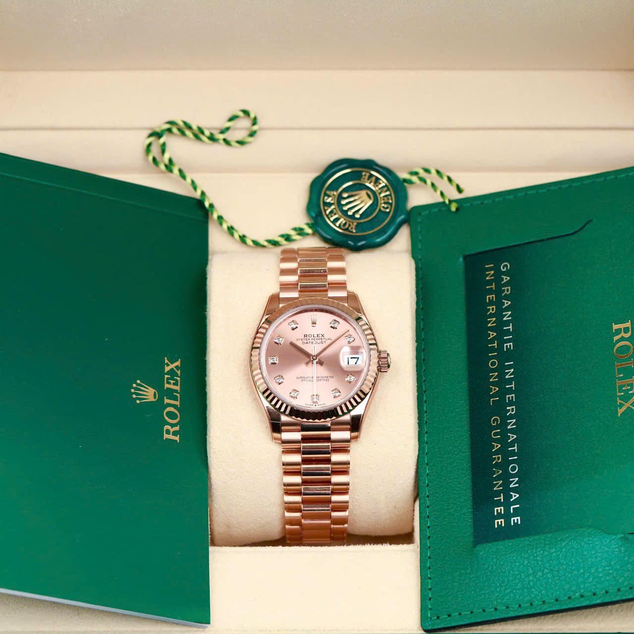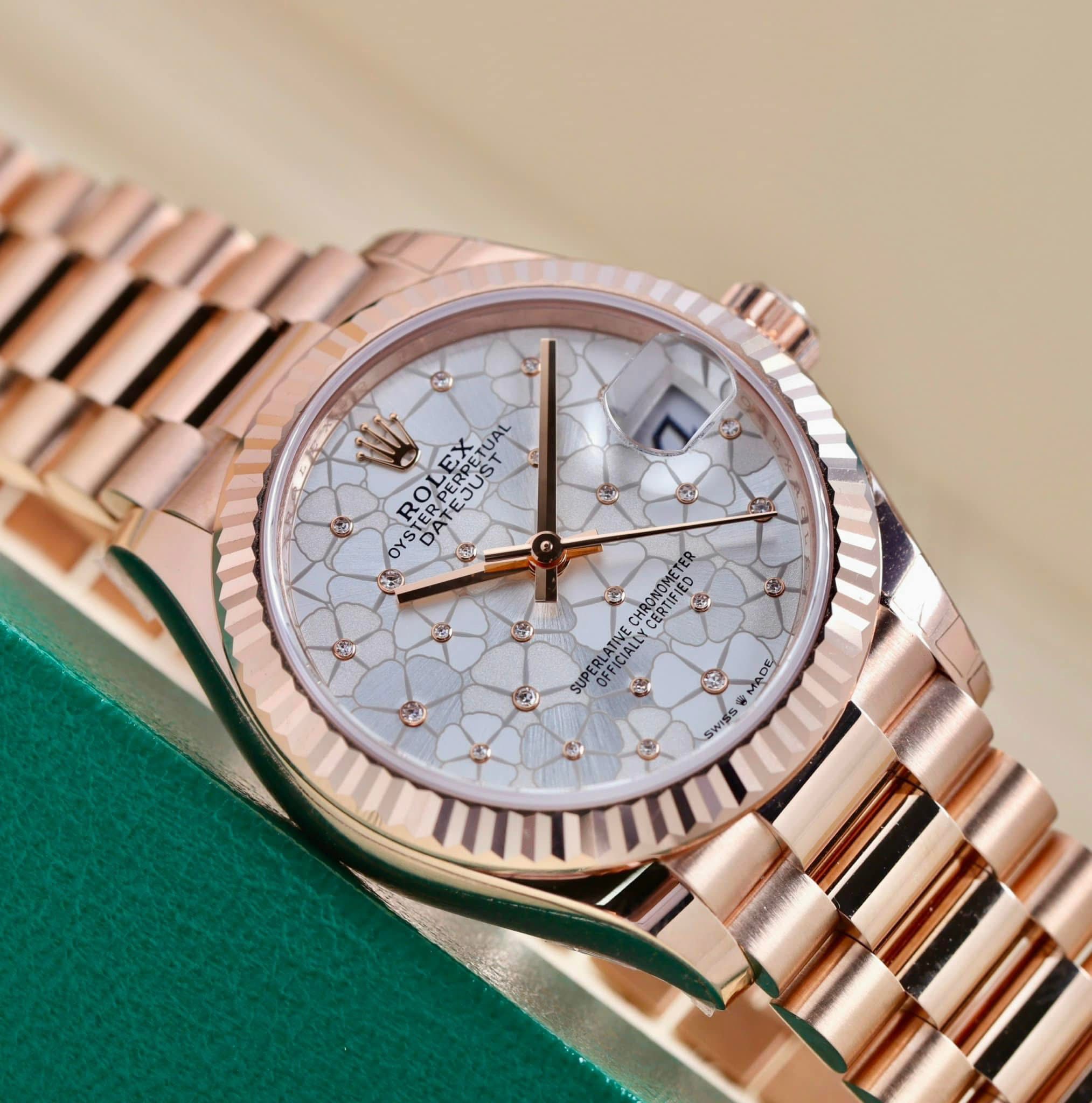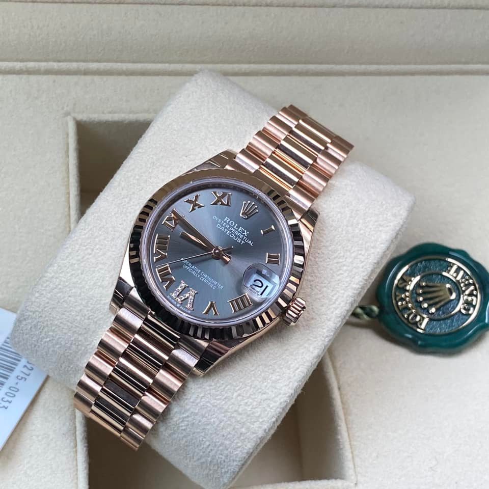 Đồng hồ Rolex Datejust 31, số tham chiếu 278275 thuộc bộ sưu tập Oyster Perpetual Datejust, ra mắt lần đầu vào năm 1945 nhân dịp kỷ niệm 40 năm thành lập thương hiệu nổi tiếng Rolex. Đây là một trong những mẫu đồng hồ tự động có chứng nhận chronometer đầu tiên trên thế giới được trang bị cửa sổ hiển thị ngày trên mặt số, một bước đột phá kỹ thuật quan trọng trong ngành chế tác đồng hồ. Hiện nay giá bán của đồng hồ Rolex 278375 Datejust là 860.000.000 VNĐ