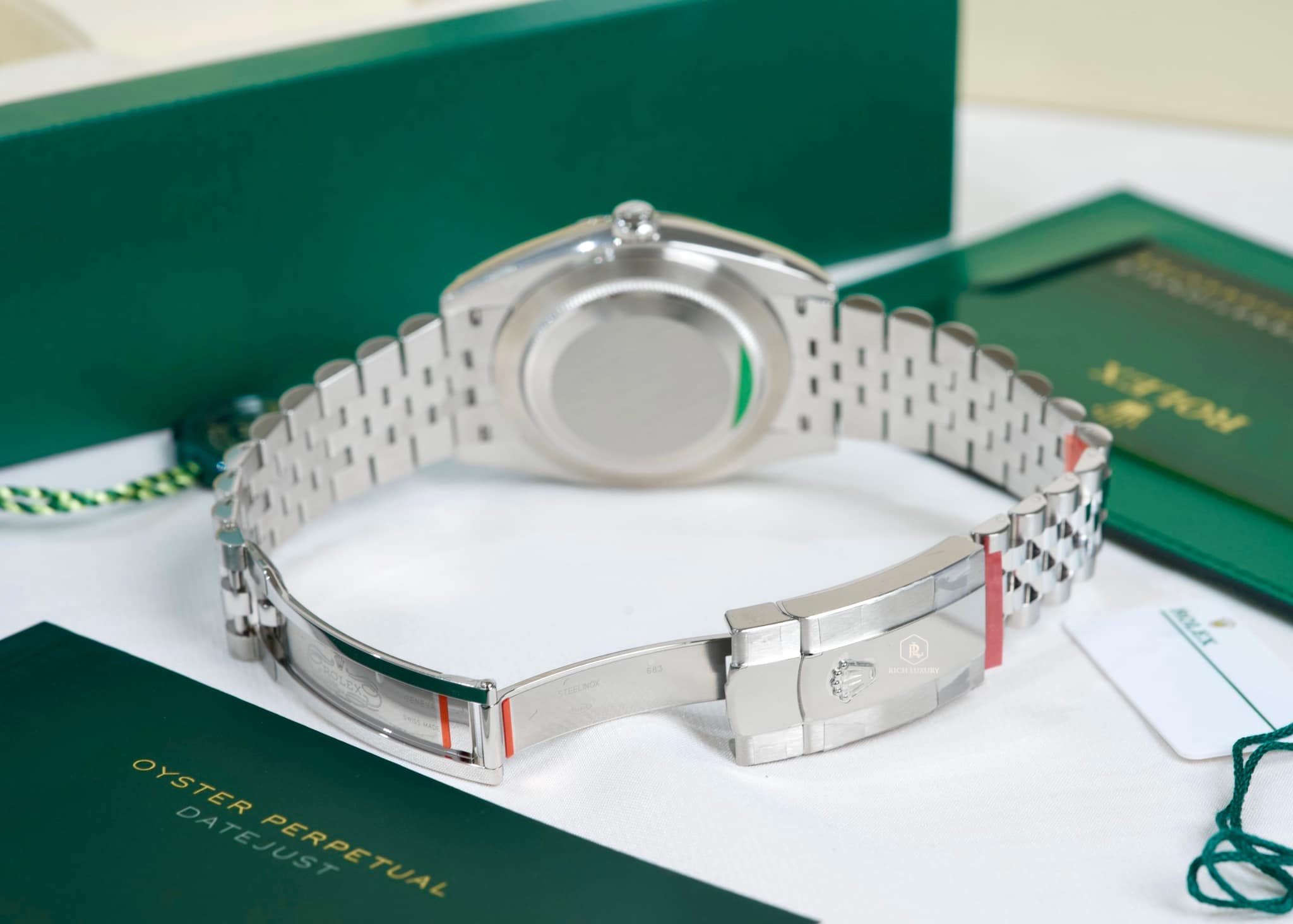 Dây đeo Jubilee có chiều dài 200mm, phù hợp với cổ tay có chu vi từ 170mm đến 220mm. Dây đeo được trang bị khóa cài Oysterlock, có khả năng chống nước và chống bụi hiệu quả.