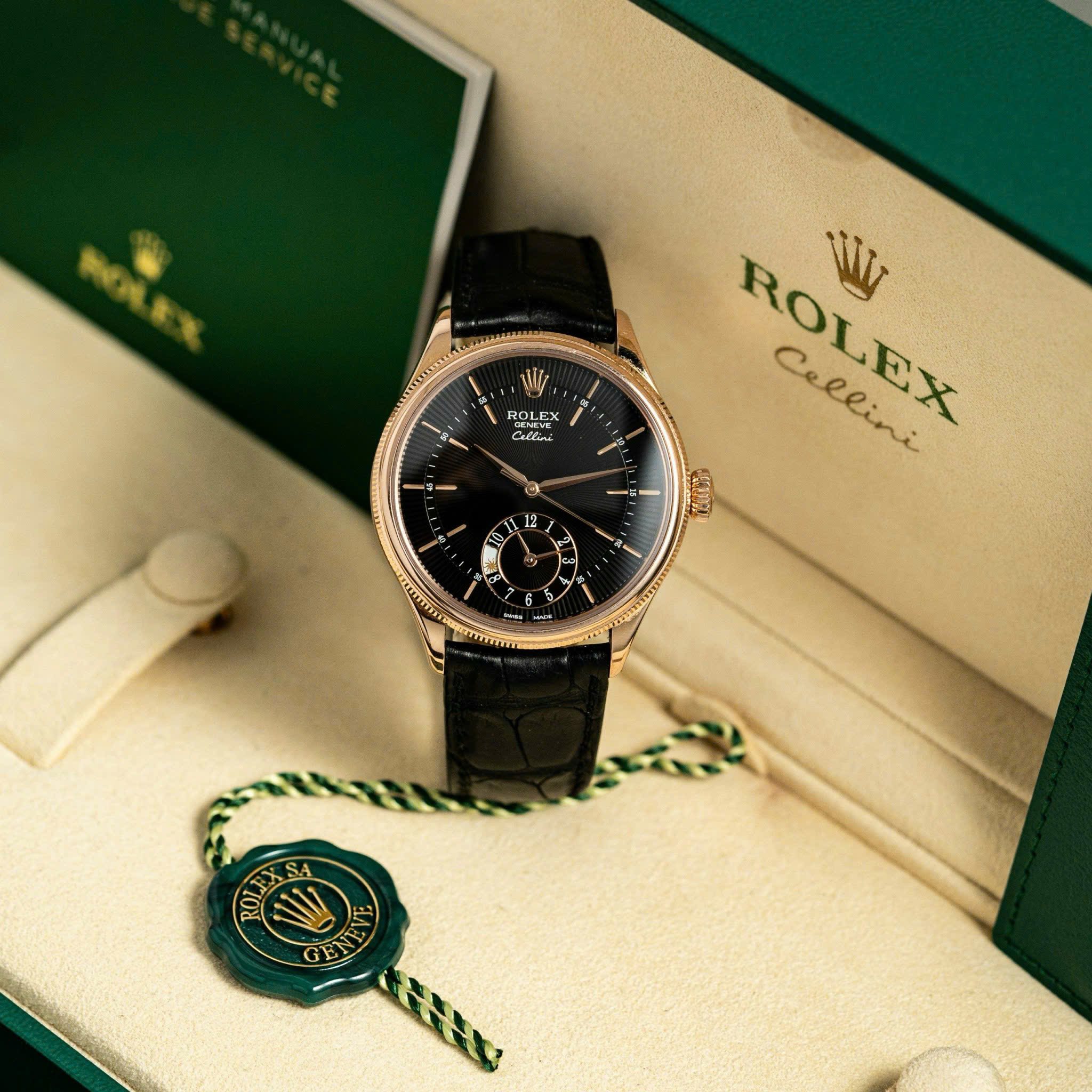 Một trong những mẫu tiêu biểu là Rolex Cellini Vintage Time 50505, sở hữu phần vỏ được chế tác từ vàng Everose 18K. Thiết kế này không chỉ giữ được nét đẹp truyền thống mà còn mang hơi thở hiện đại, phù hợp với nhiều phong cách khác nhau.