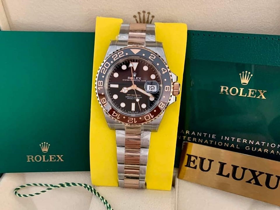 GMT-Master II 126710BLRO: Đây là phiên bản "Root Beer" của GMT-Master II, với vành bezel gốm màu nâu và đen. Giá khởi điểm của mẫu này là 12.000 đô la.