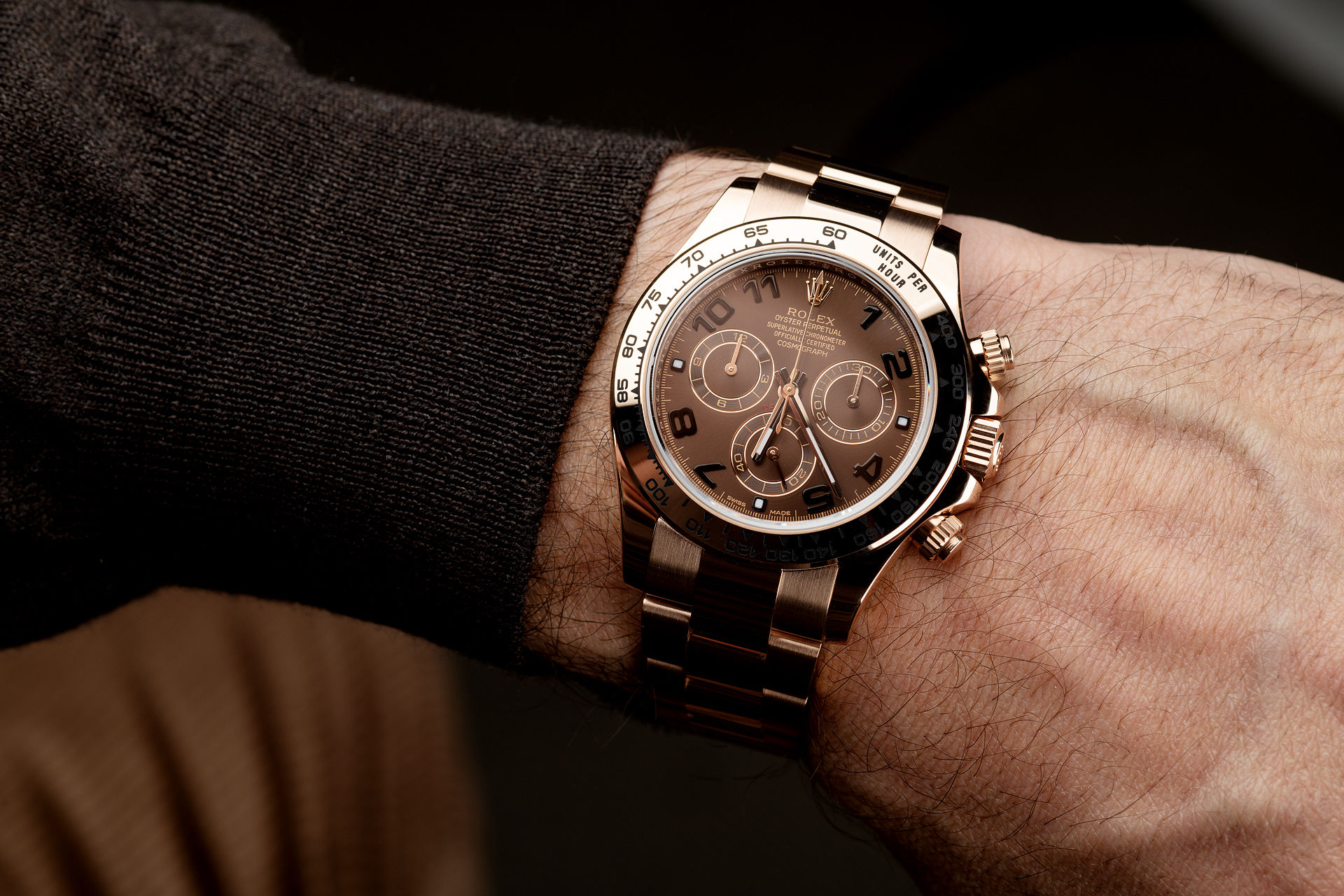 Nếu bạn yêu thích đồng hồ Rolex dây kim loại thì đừng bỏ qua Oyster Perpetual Cosmograph Daytona 40mm 116505-0004. Nó mang tông màu vàng trầm huyền bí từ chất liệu vàng Everose 18ct.. Không ngạc nhiên khi Oyster Perpetual Cosmograph Daytona 40mm 116505-0004 sở hữu mức giá 1,25 tỷ đồng.