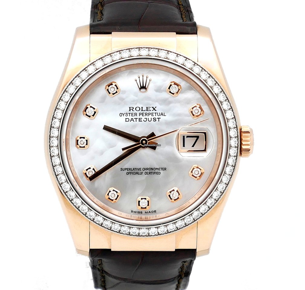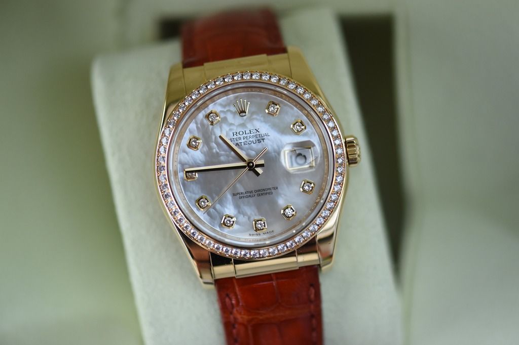 Khi nhắc đến đồng hồ Rolex chắc chắn không thể thiếu mặt của cỗ máy đếm mang mã hiệu 116185MDL. Bộ khung được đính 60 viên kim cương lấp lánh cùng với mặt số xà cừ và kim chỉ vàng vì thế nên chiếc đồng hồ này luôn là sự lựa chọn hàng đầu các các quý cô.