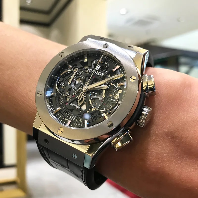 Chiếc đồng hồ sở hữu bộ máy Chronograph Skeleton HUB1155 trứ danh của hãng. Vì thế người dùng có thể quan sát toàn bộ các chi tiết và ngắm nhìn quá trình hoạt động của nó. Cũng vì thế mà chiếc đồng hồ nhanh chóng trở nên nổi tiếng và được khách hàng cực kỳ yêu thích.