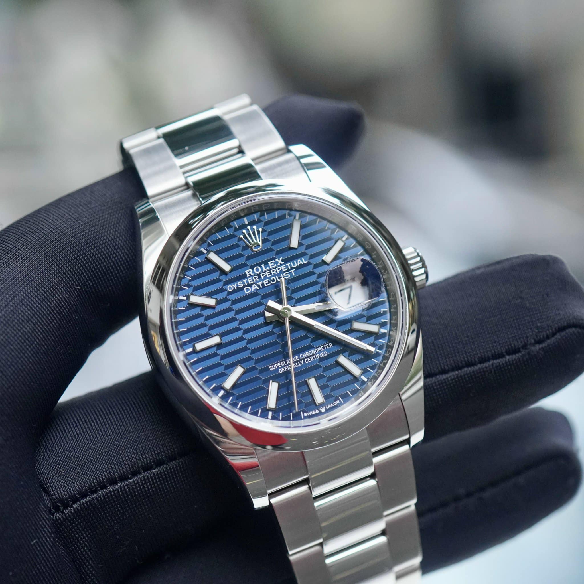 Được ra mắt và cập nhật vào năm 2021, mẫu đồng hồ này đã nhanh chóng trở thành sản phẩm Rolex được săn lùng với màu xanh dương cực kỳ cuốn hút và họa tiết cây cọ nổi bật. Sự phản chiếu ánh sáng trong thiết kế mặt số nhấn mạnh vẻ sang trọng cực kỳ thanh lịch.