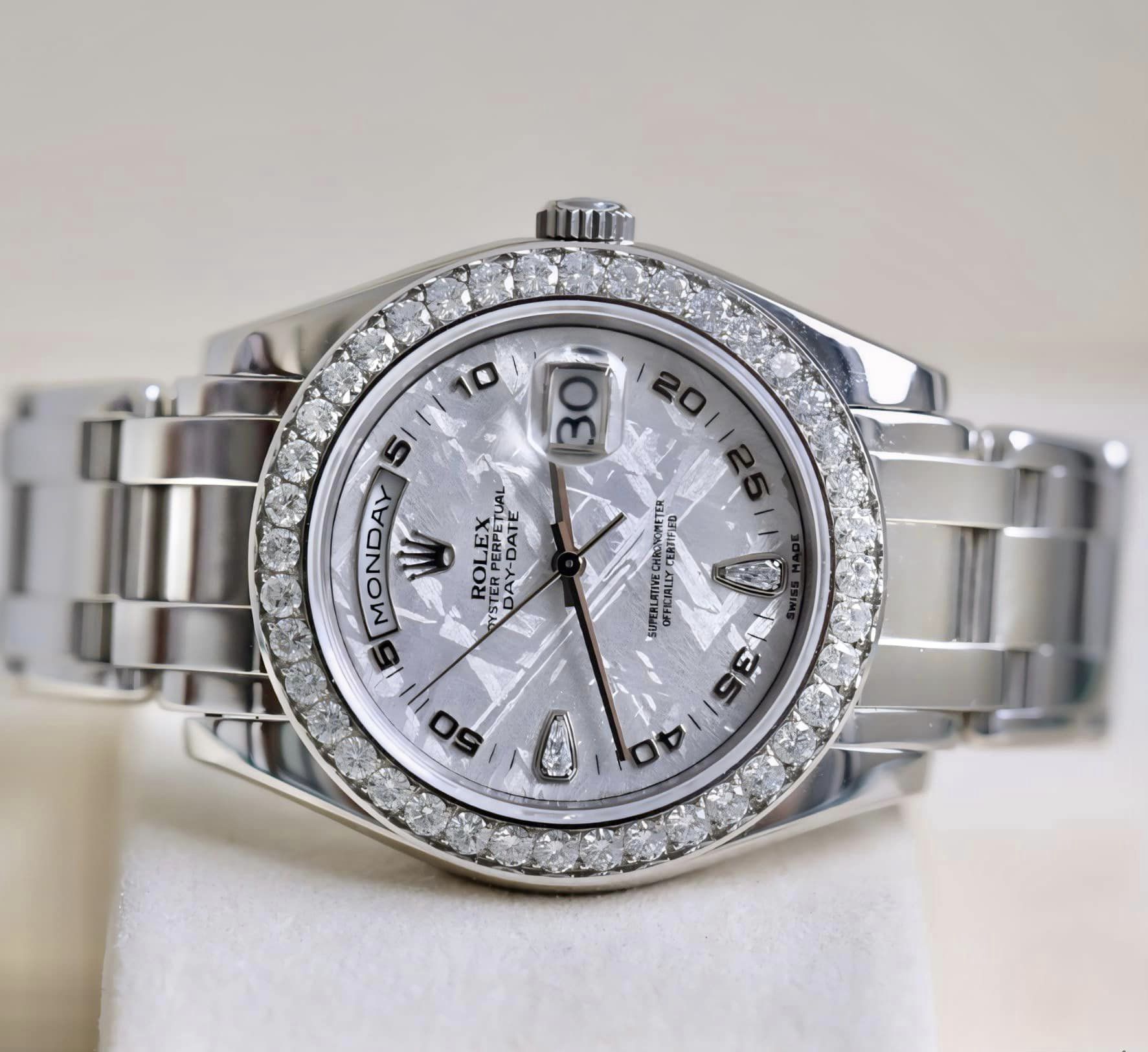 Ladies President và Day-Date là hai mẫu đồng hồ xa xỉ bậc nhất của Rolex, dành riêng cho những quý cô quyền lực và thành đạt. Cả hai đều được chế tác từ chất liệu vàng hoặc platinum cao cấp, mặt số nạm kim cương lấp lánh, đi kèm dây đeo President đặc trưng bằng vàng hoặc platinum đan lát tinh xảo.