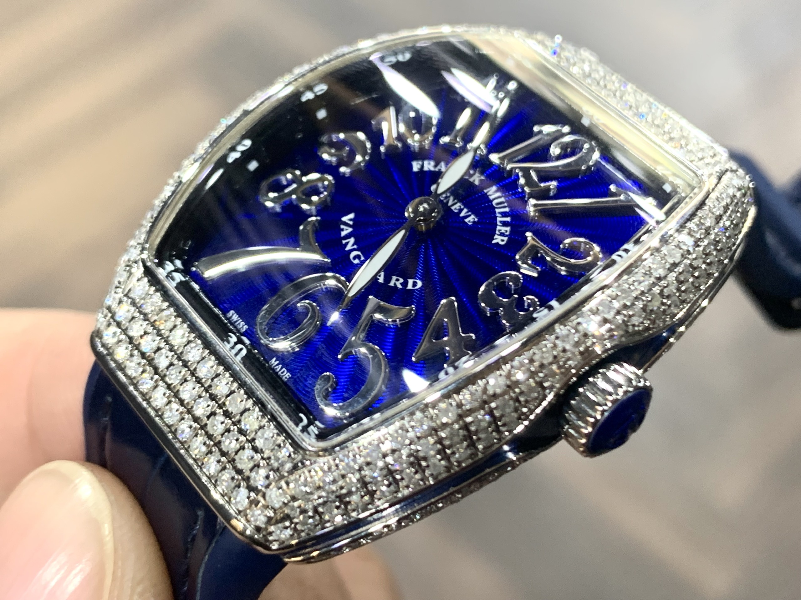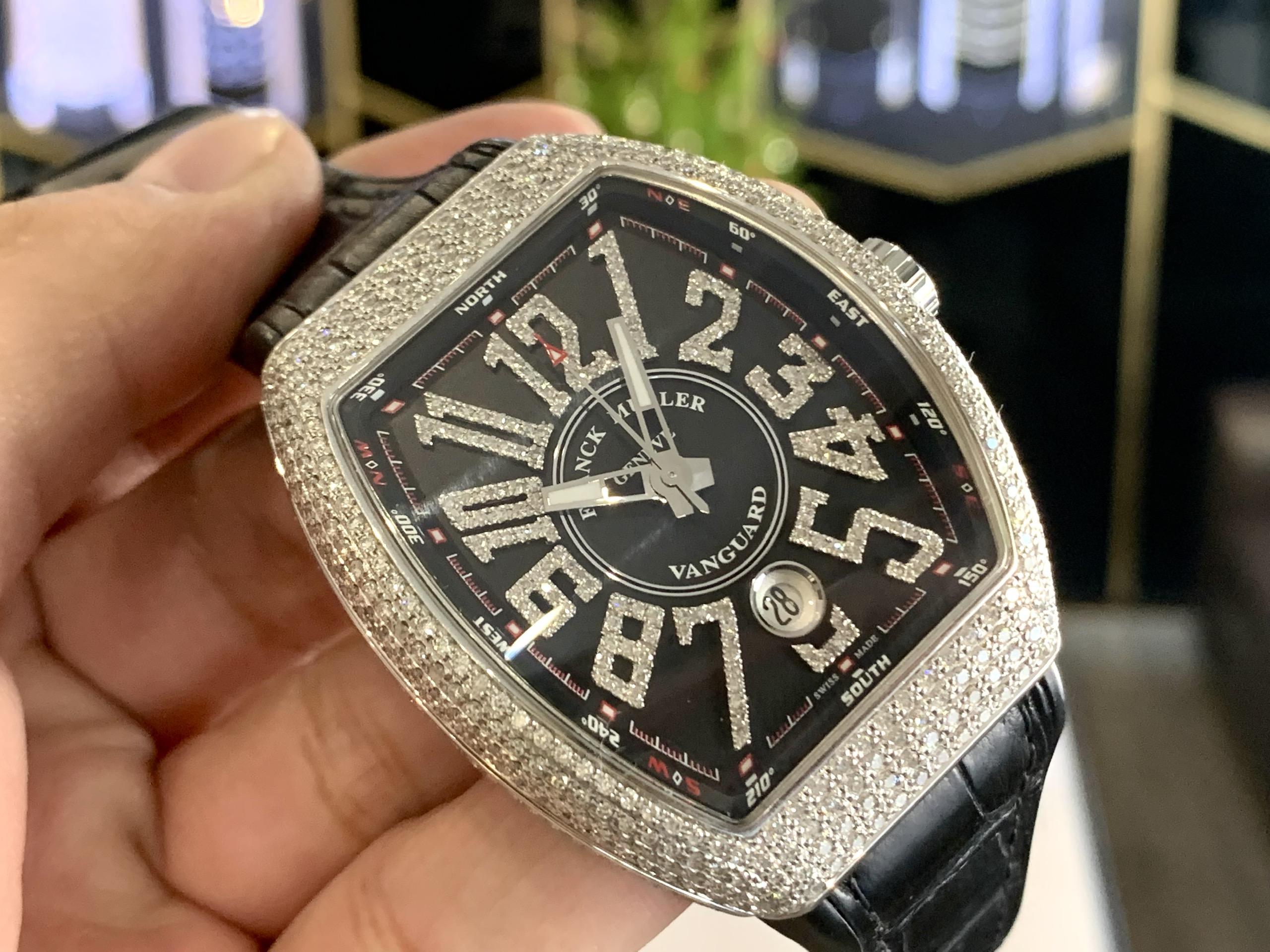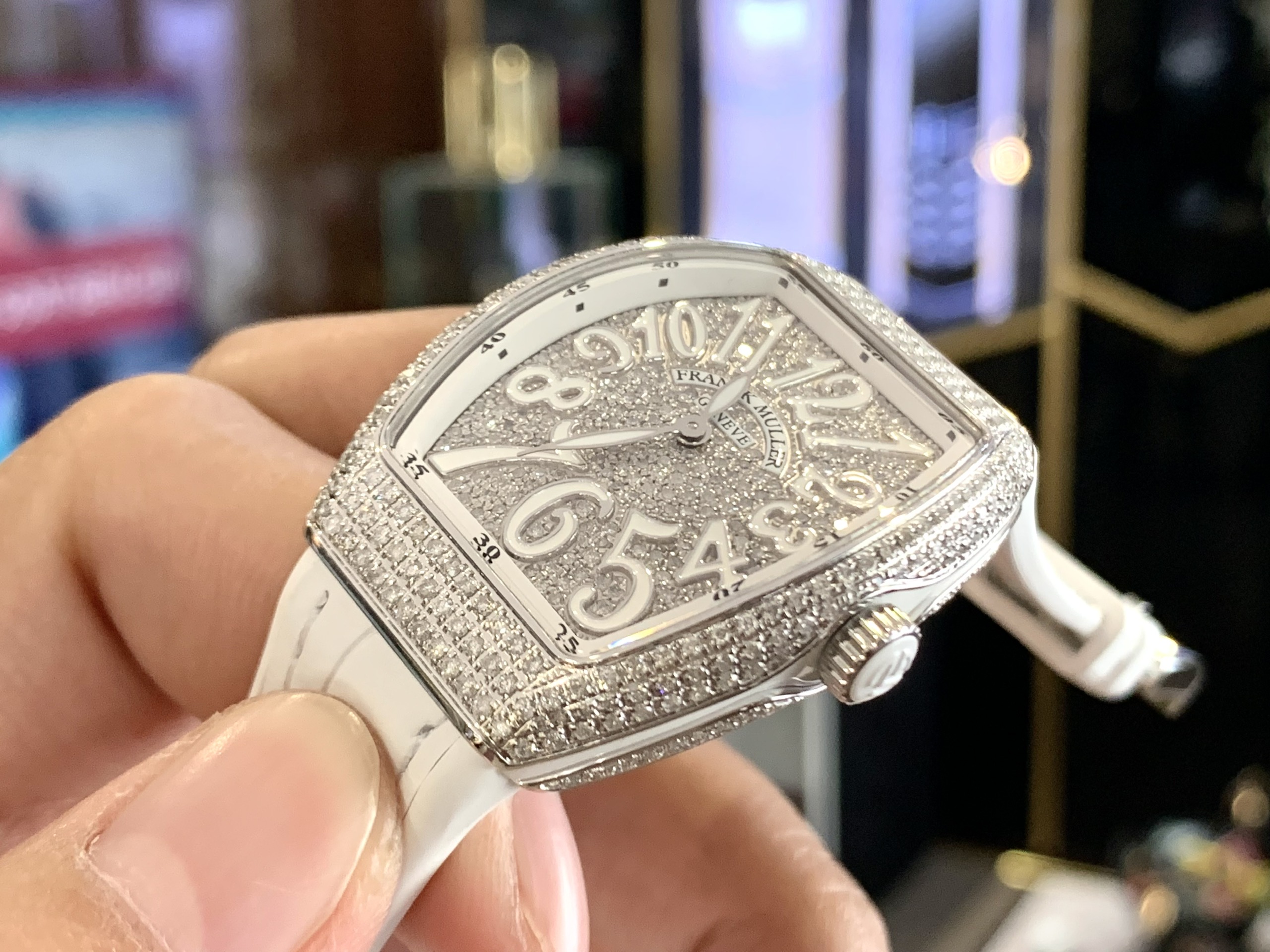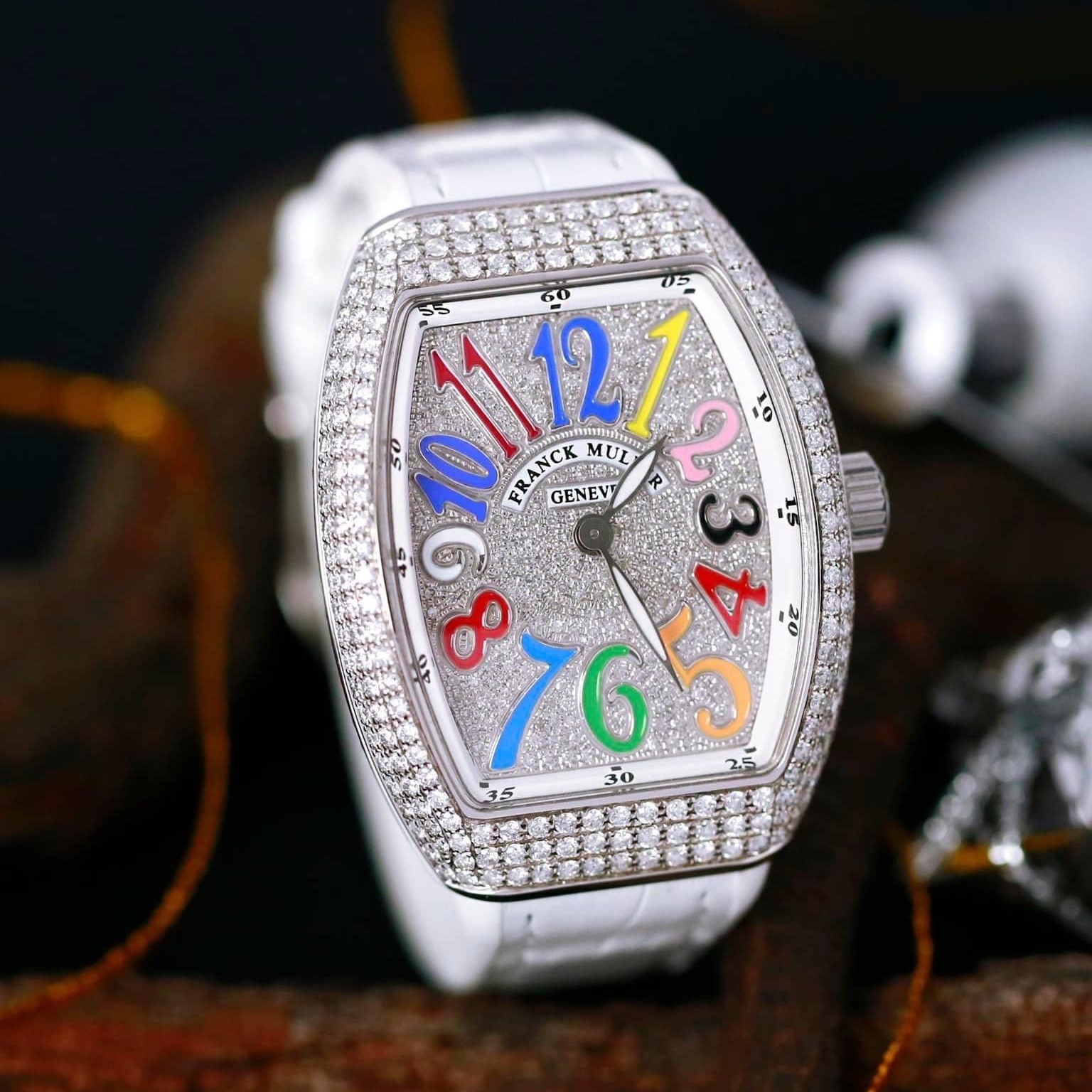 Đầu tiên đó chính là siêu phẩm đồng hồ Franck Muller full kim cương V32 Vanguard dành cho các quý cô sành điệu. Chiếc đồng hồ này đã khiến biết bao chị em mê mẩn, đắm chìm trong vẻ đẹp của nó.