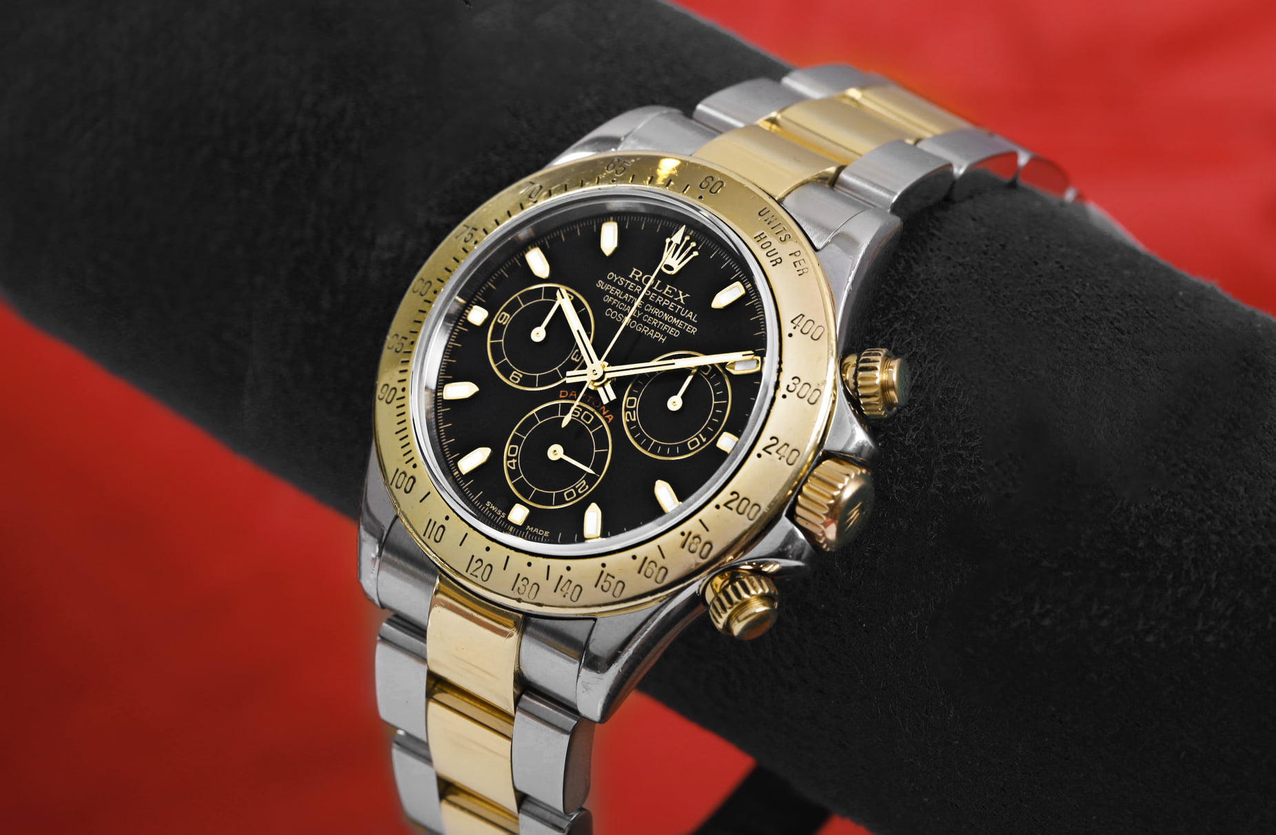Rolex Daytona 116508 luôn là mẫu đồng hồ được yêu thích nhất trong số tất cả các mẫu Daytona. Được đặt bằng vàng vàng 18k, đường gờ bằng vàng vàng tạo nên điểm nhấn hoàn hảo cho một chiếc đồng hồ đeo tay. Phiên bản 116508 còn được gọi là Daytona John Mayer.