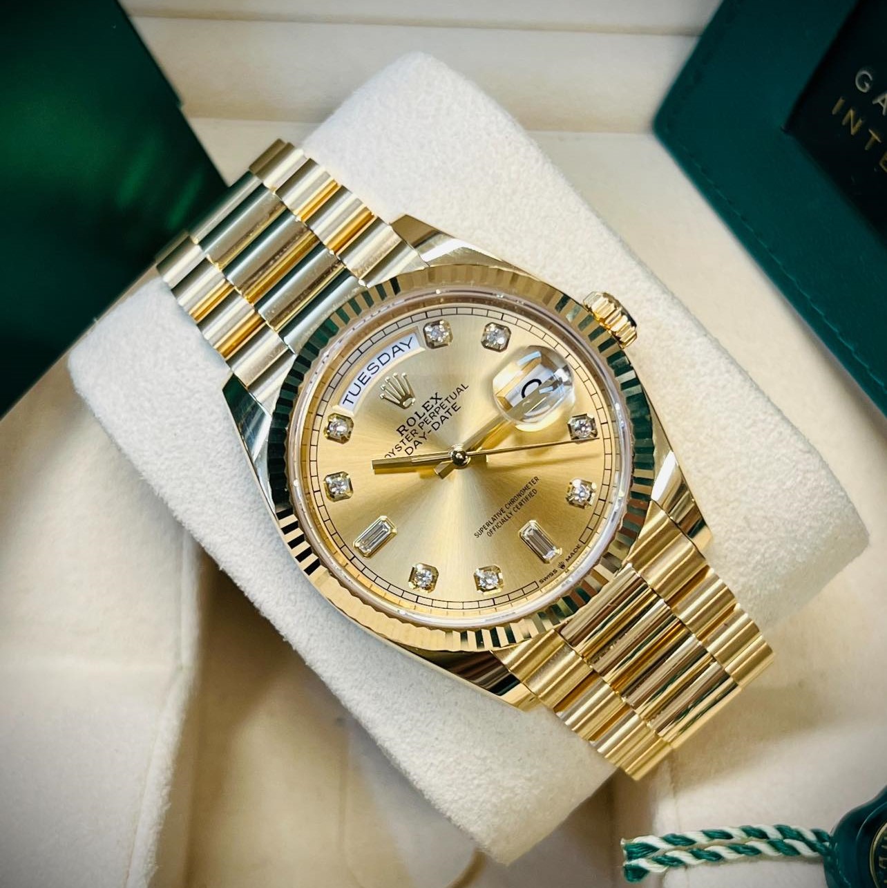 Dù cho trên thị trường có vô vàn sản phẩm nhưng đồng hồ Rolex Day-Date 36 vẫn luôn là tượng đài không thể sụp đổ. Phiên bản đồng hồ luôn khiến mọi người phải trầm trồ mỗi khi xuất hiện.