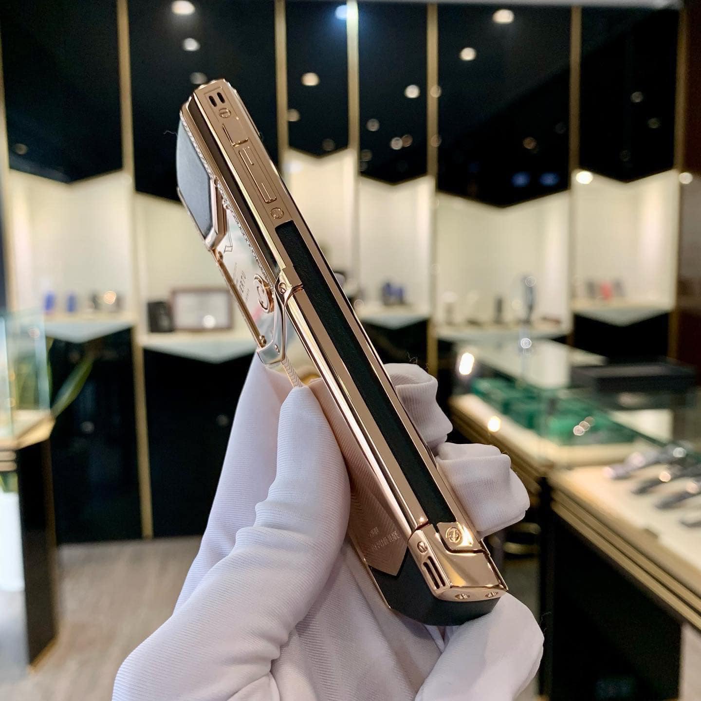 Không những thế, sản phẩm được chế tác từ những chất liệu chọn lọc có chất lượng tốt nhất. Trong đó nổi bật đó là bộ khung được đúc nguyên khối từ vàng 18K đắt đỏ. Nhờ đó, khi nhìn từ xa chiếc điện thoại như một thỏi vàng sáng bóng, nổi bật giữa hàng ngàn sản phẩm khác. Không những thế, nghệ nhân còn khéo léo sử dụng vàng ở phần lưng, tấm ốp và bàn phím để tăng thêm tính thẩm mỹ.