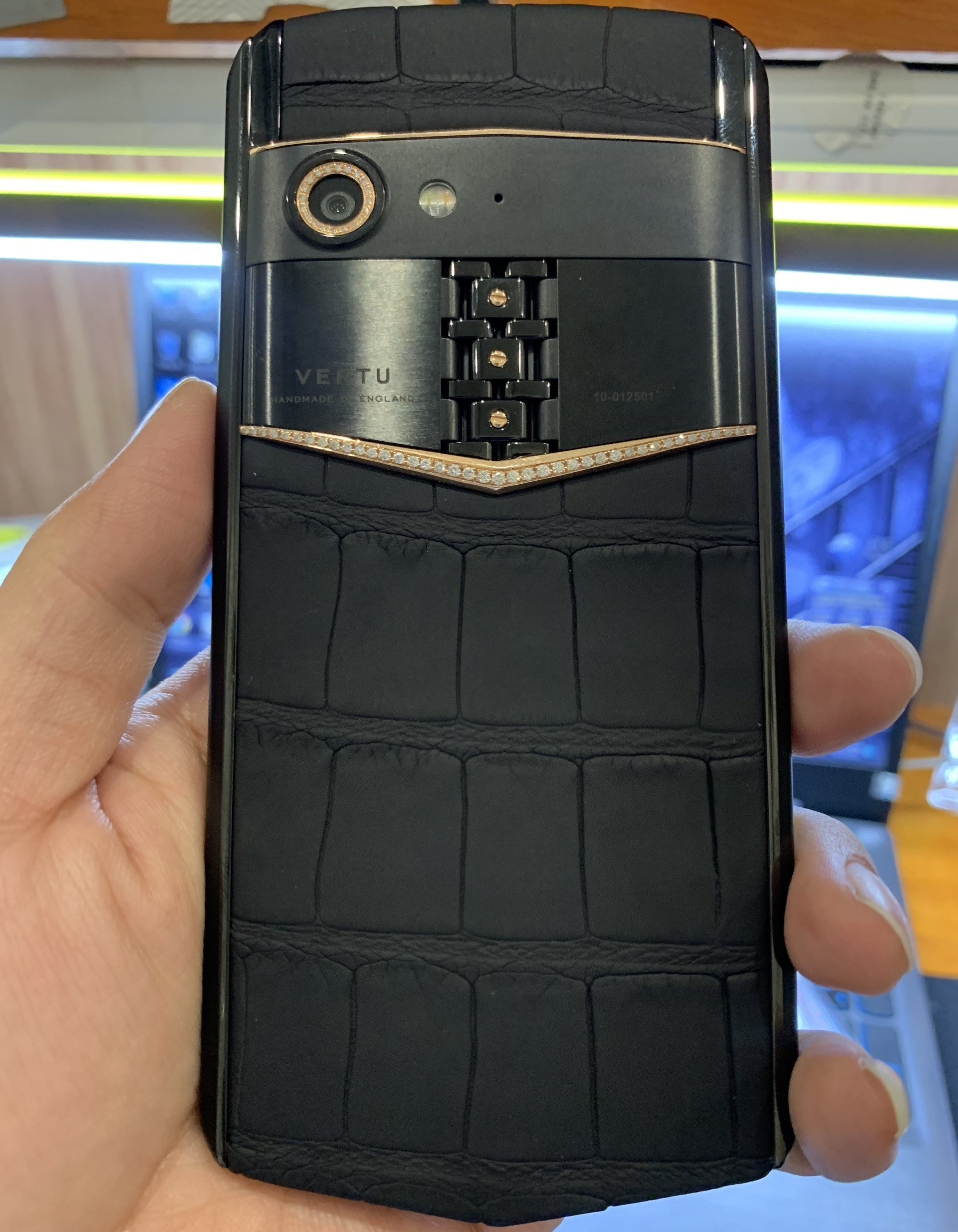 Vertu Aster P Gold Diamonds Alligator được lắp ráp tại Anh bởi những chi tiết cơ khí được chế tạo bằng tay và đáp ứng được những tiêu chuẩn khắt khe của Thụy Sĩ.