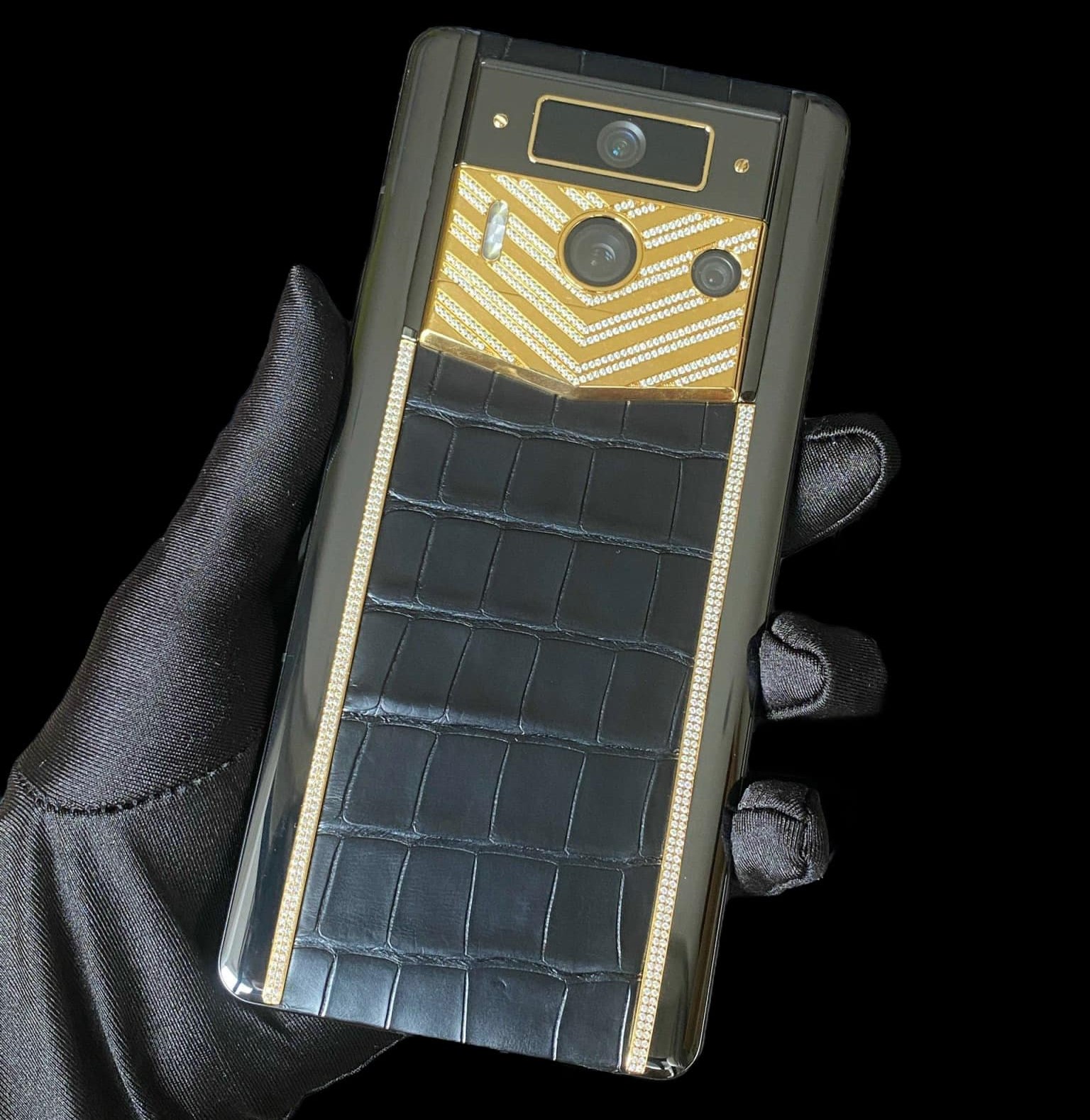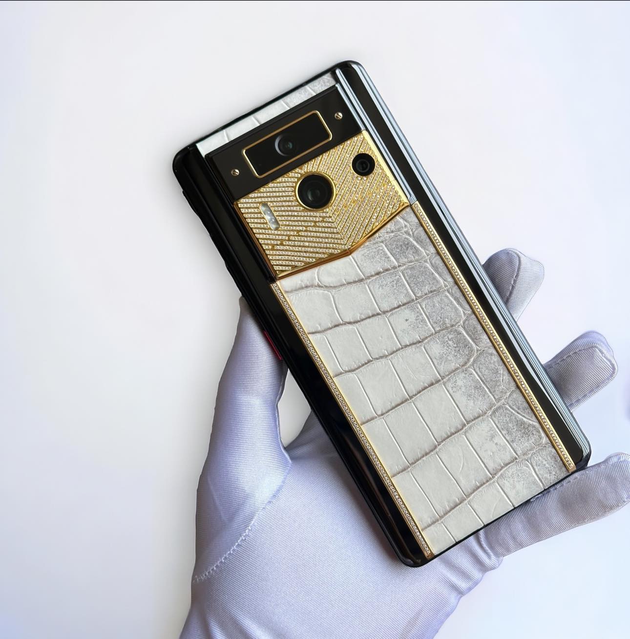 Khung máy được gia công từ kim loại cao cấp nên vô cùng chắc chắn và bền bỉ theo năm tháng. Kết hợp cùng mặt lưng được chế tác tinh xảo bởi lớp da cá sấu, bê, carbon cao cấp, do đó mà mỗi chiếc điện thoại đều sở hữu nhưng vân da độc nhất. Tất cả toát lên vẻ ngoài sang trọng và đẳng cấp cho người dùng.