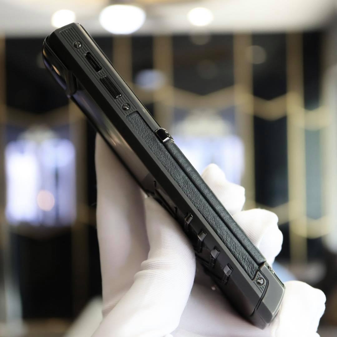 Hai bên viền điện thoại thay vì được thiết kế các hoạ tiết độc đáo như những mẫu mã khác thì Vertu Signature S Pure Black Mới 99% lại tiết chế tối đa. Nhìn chung mẫu sản phẩm này hoàn toàn phù hợp với những bạn nam sử dụng. Đằng sau điện thoại còn được bọc một lớp da bò hoặc da cá sấu tuỳ loại rất chắc chắn và bền chặt.