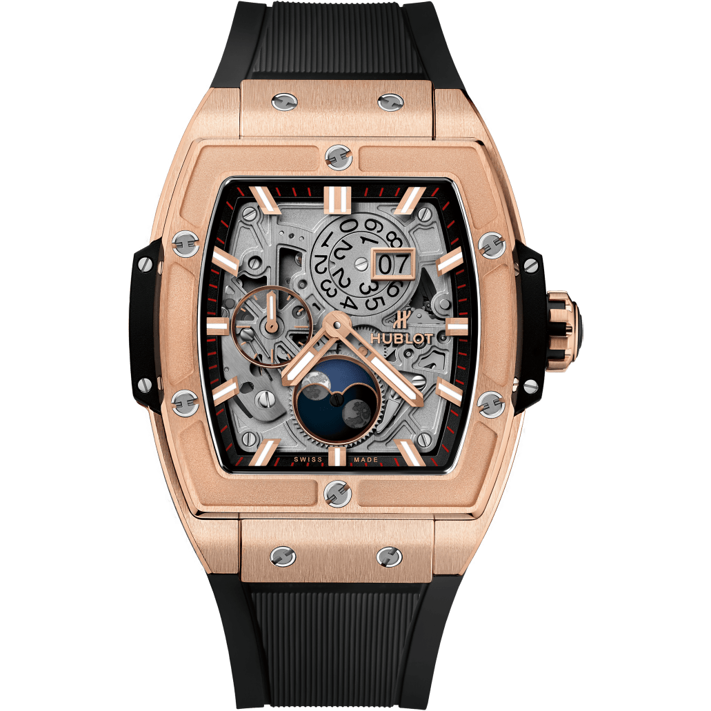 Thương hiệu đồng hồ cao cấp Hublot luôn thực sự rất biết cách khơi dậy trí tò mò của các tín đồ thời trang. Một trong số đó là cho ra mắt bộ sưu tập Spirit of Big Bang năm 2011. Ngay từ ngày đầu tiên xuất hiện, Hublot Spirit Of Big Bang Moonphase King Gold đã nhanh chóng chiếm được cảm tình của nhiều người với vẻ ngoài ấn tượng và cả thiết kế bên trong. Cá tính với những đường nét được trau chuốt tinh tế và bộ vỏ ton-sur-ton mạnh mẽ, mẫu đồng hồ này khiến người nhìn không khỏi rời mắt.