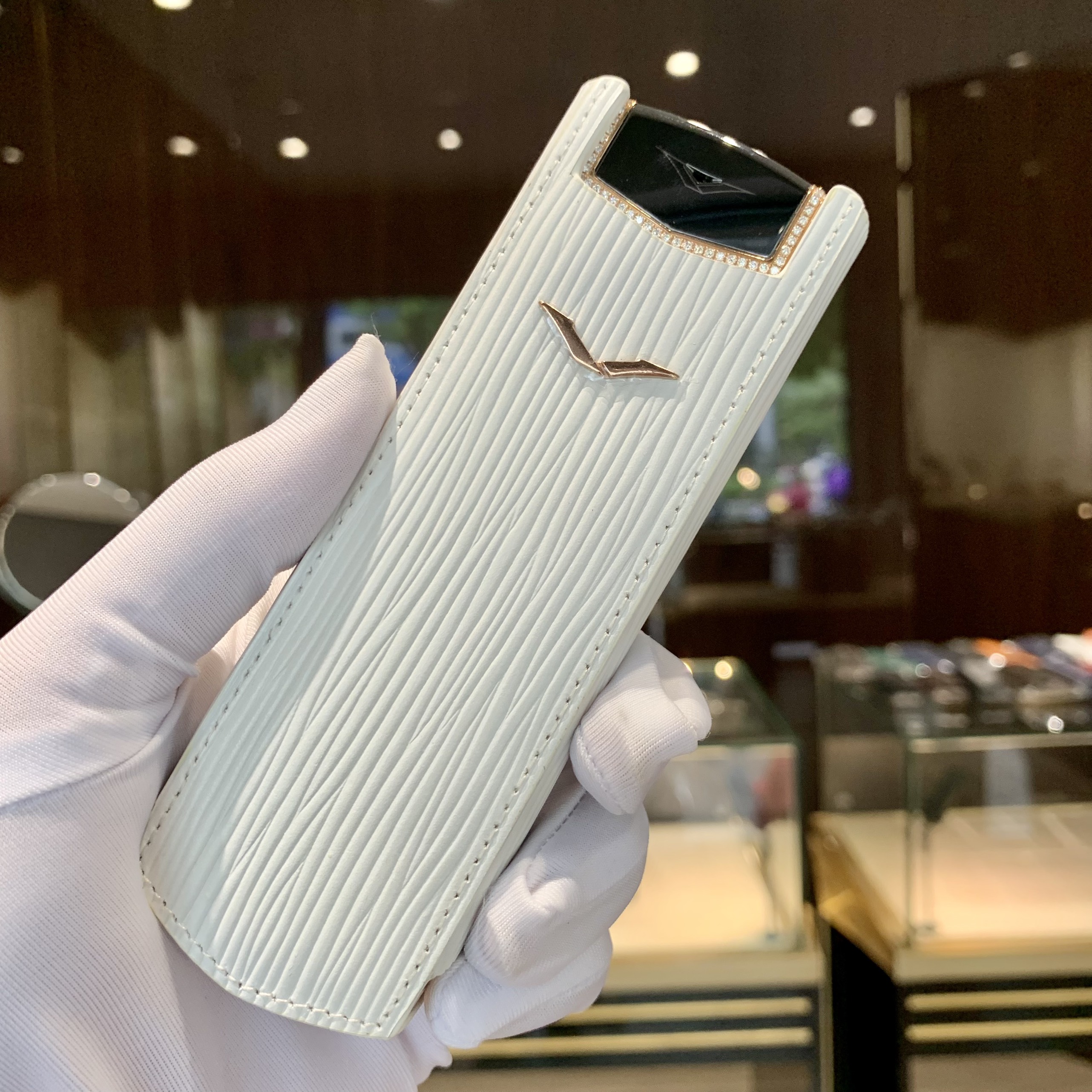 Bao da Vertu Signature S trắng không nắp