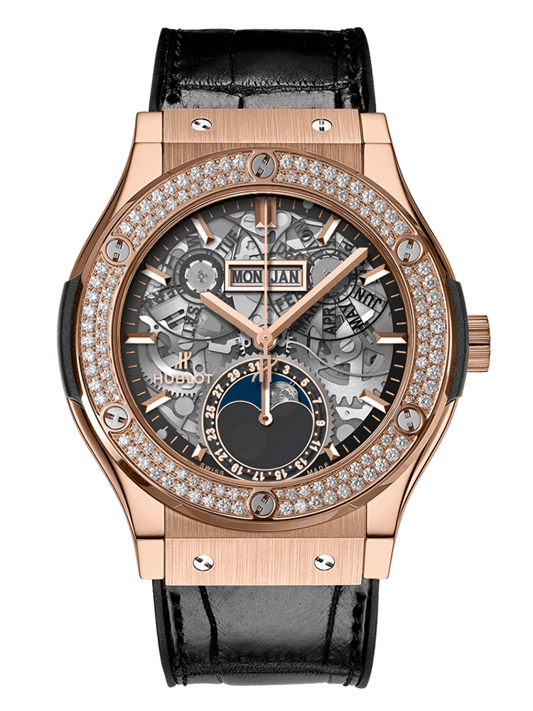 Thiết kế mới lạ của Hublot Classic Fusion Aerofusion Moonphase King Gold Diamonds