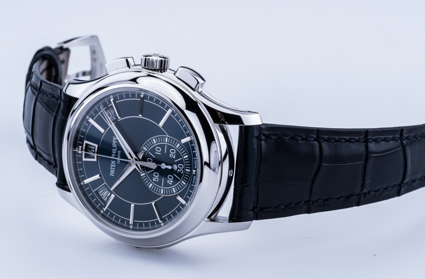 Điểm đặc biệt nhất ở 5905P-001 Annual Calendar Chronograph Blue có lẽ là chức năng Chronograph. Nó được bố trí ở vị trí giờ số 6. “Chronograph” là một từ tiếng Hy Lạp, trong đó “chronos” có nghĩa là thời gian, còn “graph” có nghĩa là ghi, chép lại. Chức năng này giúp cho người dùng đo thời gian của một sự kiện nào đó. Hiểu đơn giản hơn đó chính là chức năng bấm giờ mà không làm ảnh hưởng tới sự liên tục của thời gian chạy trên đồng hồ.
