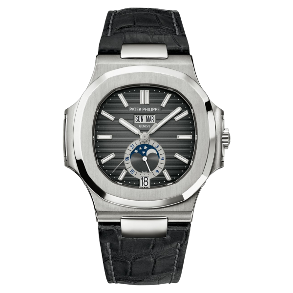 5726/1A-001 là một biểu tượng của sự tinh tế và đẳng cấp. Với mặt số màu xám độc đáo, điểm nhấn là các chỉ số và kim loại phủ phản quang, chiếc đồng hồ này thể hiện sự thanh lịch và sang trọng mà chỉ Patek Philippe mới có. Vỏ làm từ thép không gỉ 316L với đường kính 40.5mm mang lại cảm giác đầy đủ và chắc chắn trên cổ tay.