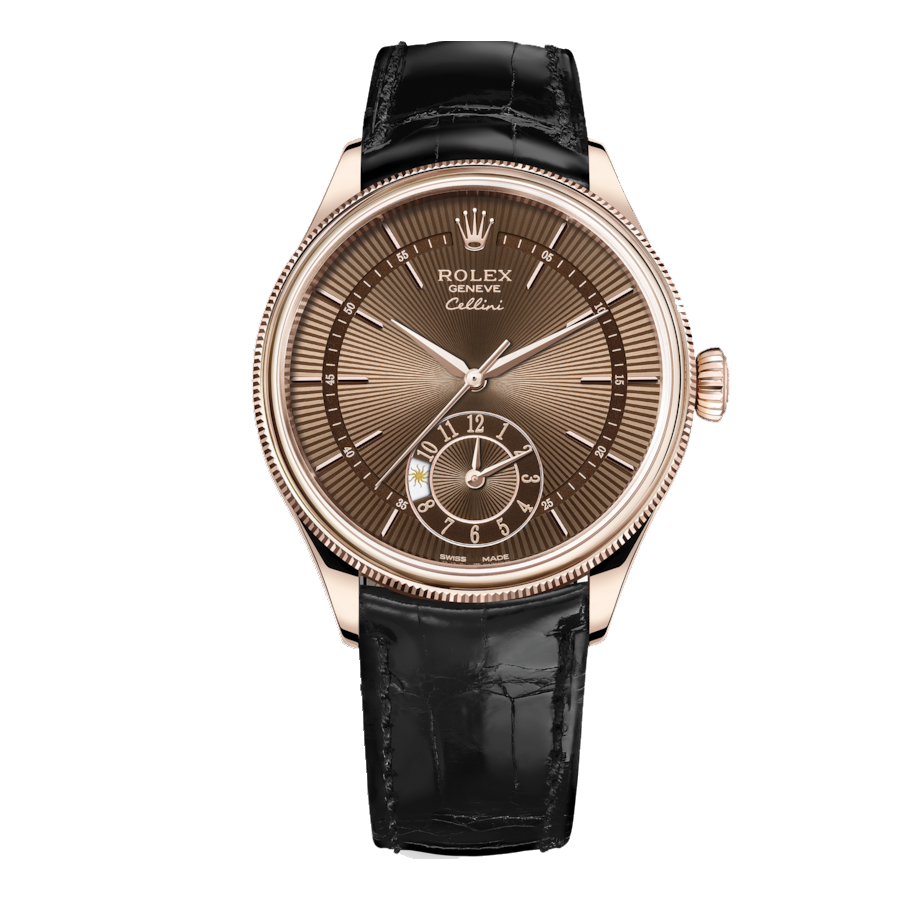 Theo phong cách truyền thống nhất, phiên bản Cellini Dual Time phù hợp với dây đeo da cá sấu khâu với quy mô lớn. Khóa 18 ct vàng phù hợp với vàng của các loại vỏ đồng hồ.