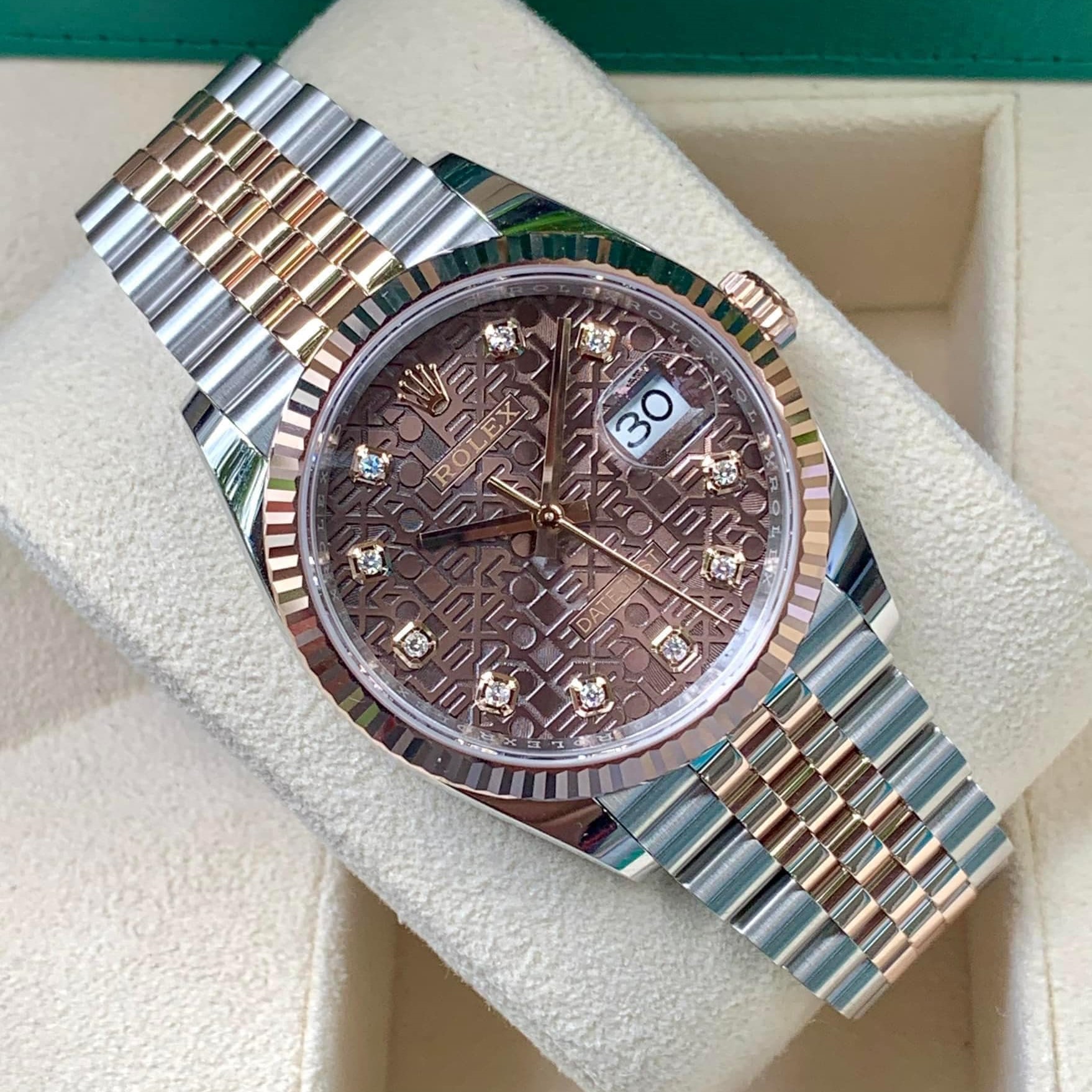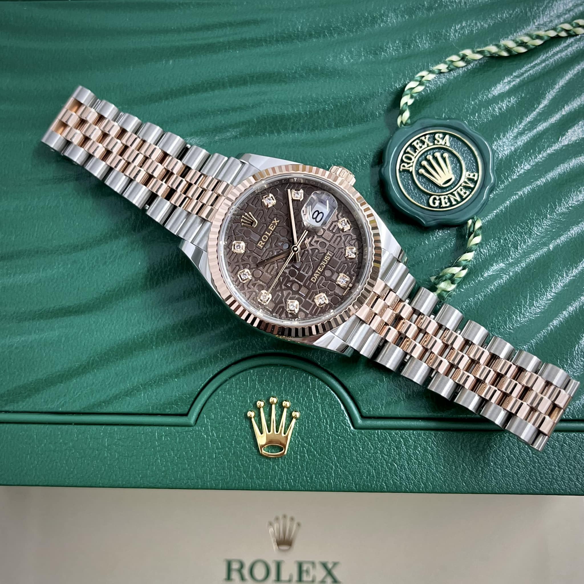 Chiếc đồng hồ Rolex Datejust chính hãng này với tông màu chocolate trầm ấm đã say đắm biết bao khách hàng với sức hút khó cưỡng lại được.