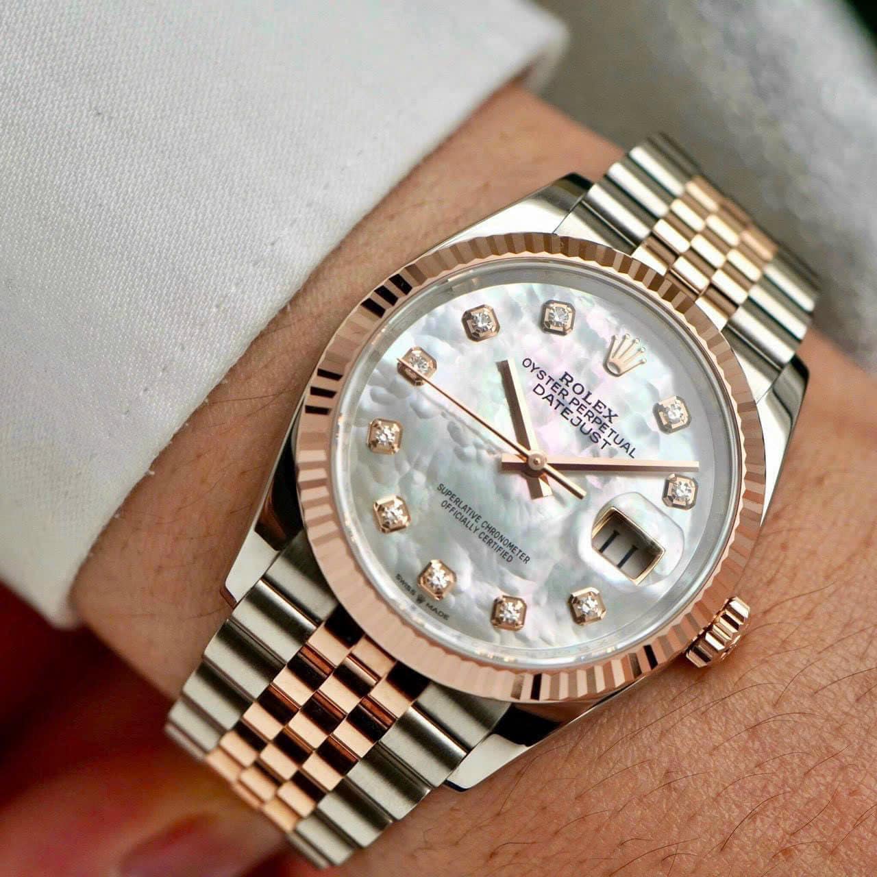 Trong đó, đồng hồ Rolex Datejust 36mm 126231, mặt khảm trai, dây đeo Jubilee là cái tên nổi bật khiến bạn không thể rời mắt.