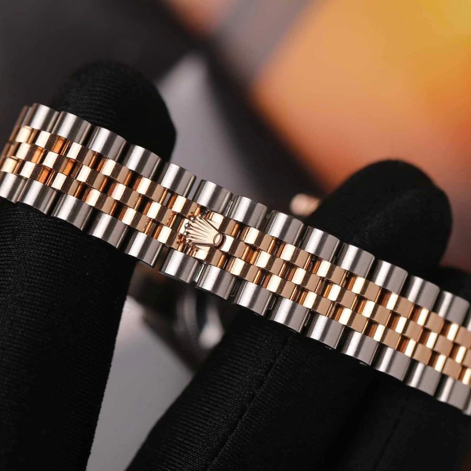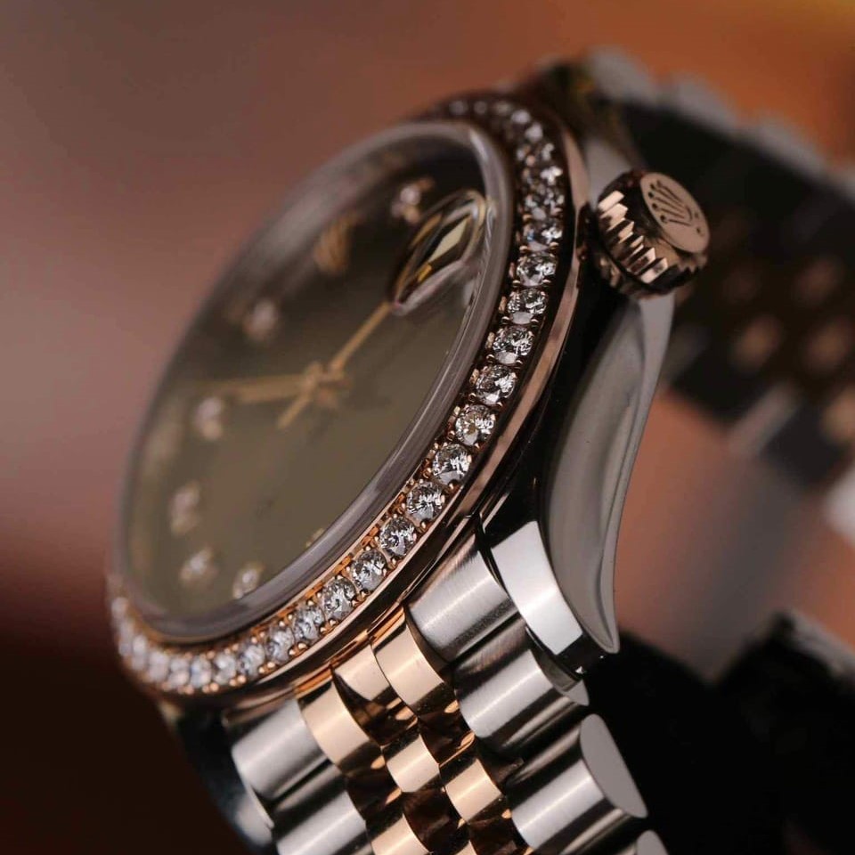 Rolex Oyster Perpetual Datejust 31mm sở hữu phần vỏ được chế tác từ chất liệu đặc biệt – Rolesor. Đây là vật liệu pha trộn giữa vàng Everose và thép Oyster, giữ trọng lượng nhẹ với độ cứng cực cao, chống ăn mòn và giữ nguyên màu sắc bền bỉ với thời gian. Ngoài ra, chúng còn tỏa sáng rực rỡ sau khi đánh bóng. Riêng phần vành thiết bị được chế tác từ vàng Everose 18ct nguyên khối, được nạm vô số viên kim cương tỉ mỉ tạo nên hiệu ứng quang học lấp lánh đầy ấn tượng. Mặc dù là một chiếc đồng hồ mặt nhỏ, song tất cả các chi tiết đều được thể hiện sắc sảo đến mức gần như không có một vết gợn.