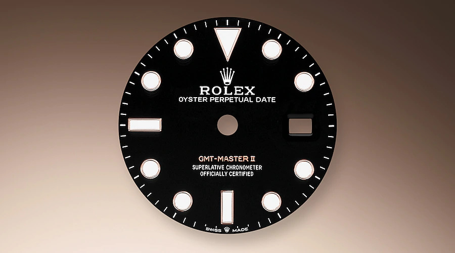 Được trang bị các kim hiển thị giờ phút giây có đầu kim hình tam giác theo vạch 24 giờ truyền thống và vành đồng hồ xoay hai chiều có miếng lót Cerachrom chia độ 24 giờ, GMT-Master II cho phép theo dõi hai múi giờ cùng lúc: giờ địa phương và giờ tham chiếu, hoặc giờ địa phương và giờ tương ứng ở một múi giờ khác. Ngày được hiển thị ở điểm 3 giờ, được đồng bộ hóa với bộ hiển thị giờ địa phương.