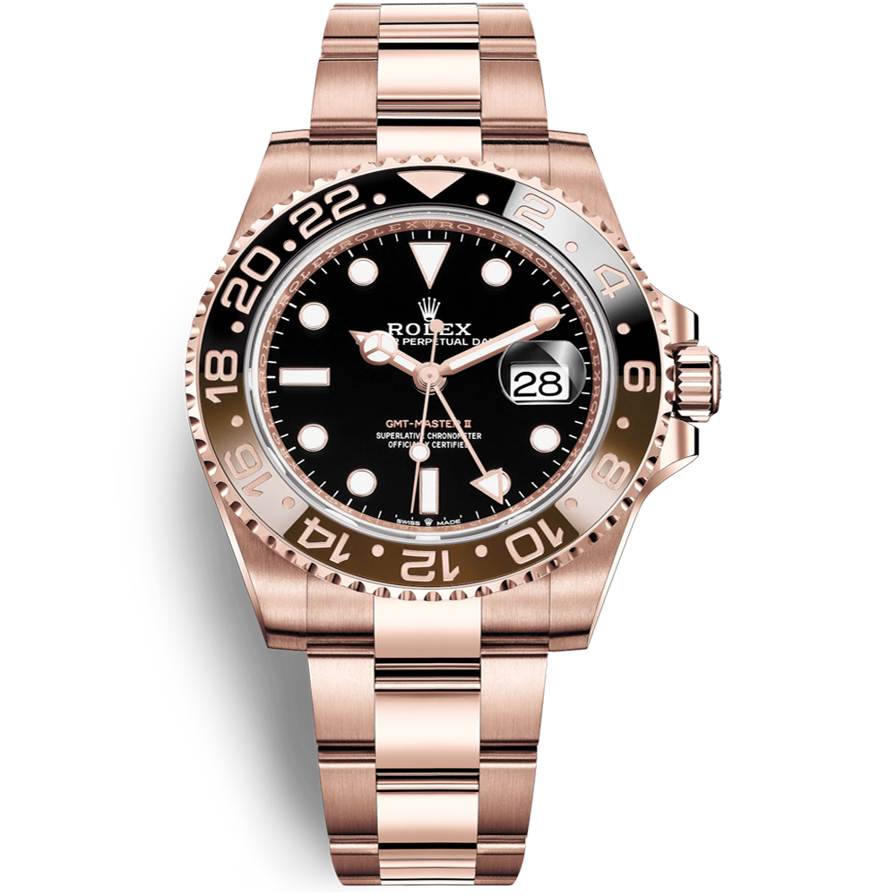 Đồng hồ Oyster Perpetual GMT-Master II bằng vàng Everose 18 ct với dây đeo Oyster.