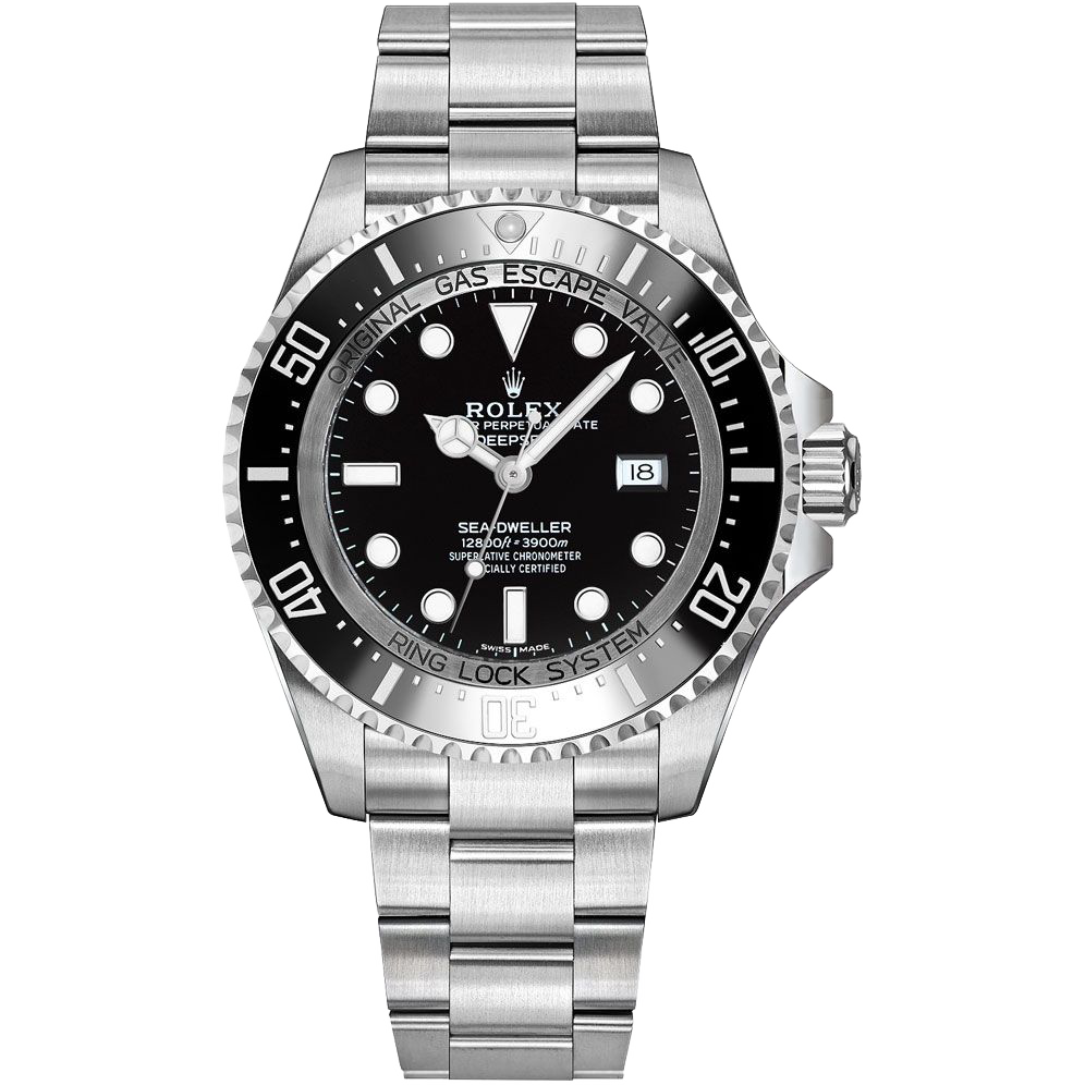Nó có mặt số màu đen và vạch dấu giờ phát quang lớn. Không thấm nước ở độ sâu 12,800 feet (3,900 mét) với đai kính xoay 60 phút một chiều, Rolex Deepsea nằm trong số các đồng hồ dành thợ lặn siêu bền được Rolex chế tạo để thám hiểm dưới biển sâu.