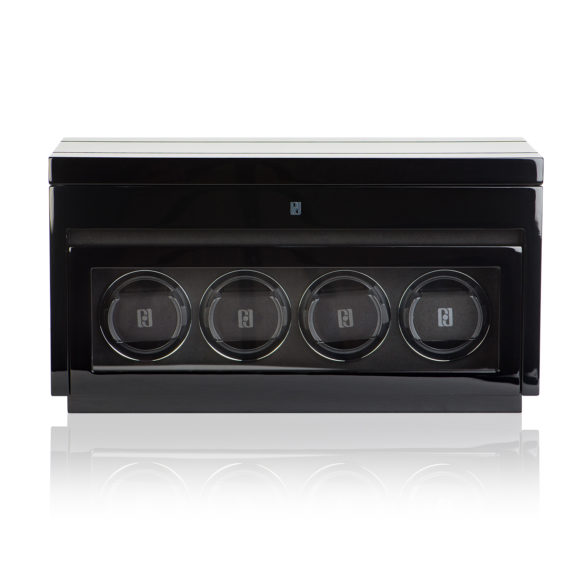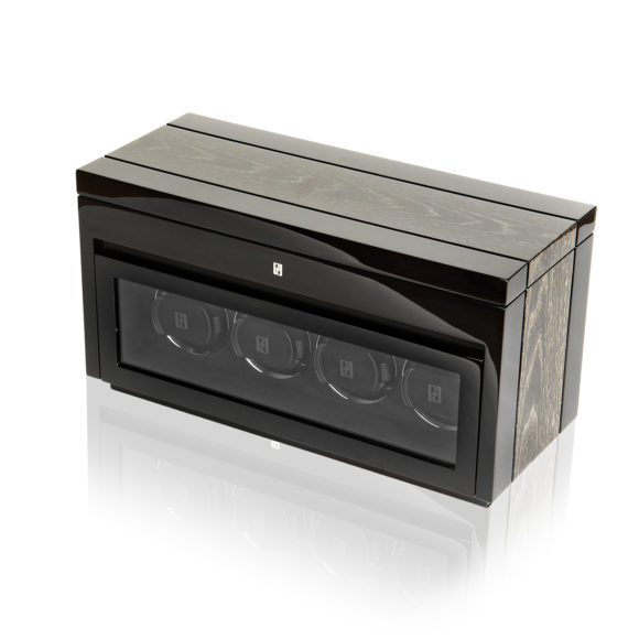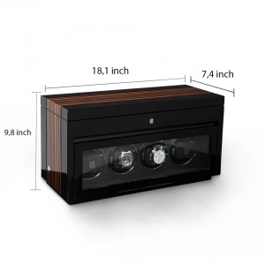 Bộ lên dây đồng hồ tự động cho 4 đồng hồ với không gian lưu trữ 6 đồng hồ, điều khiển màn hình cảm ứng LCD, đèn nền LED và bộ điều khiển từ xa của Paul Design.