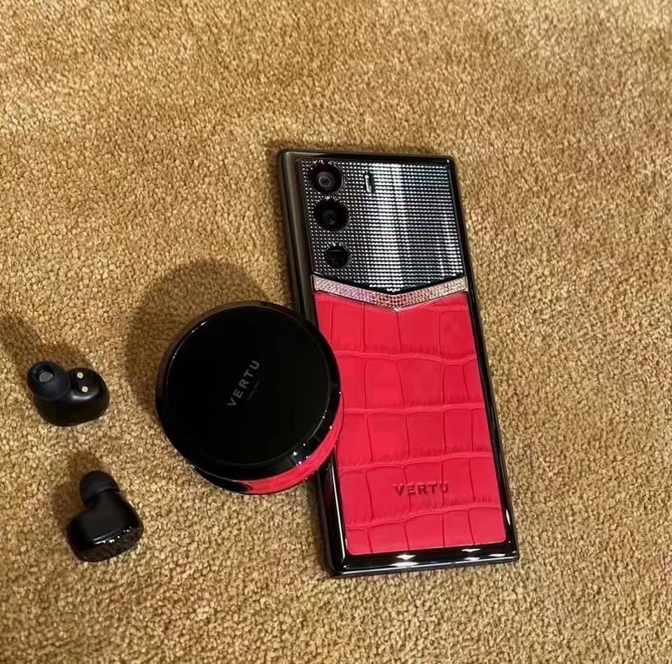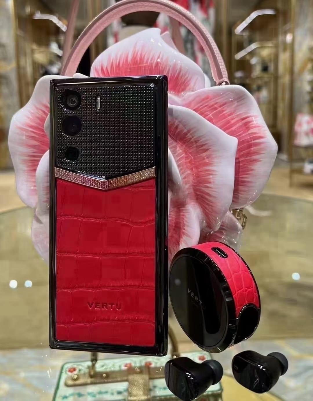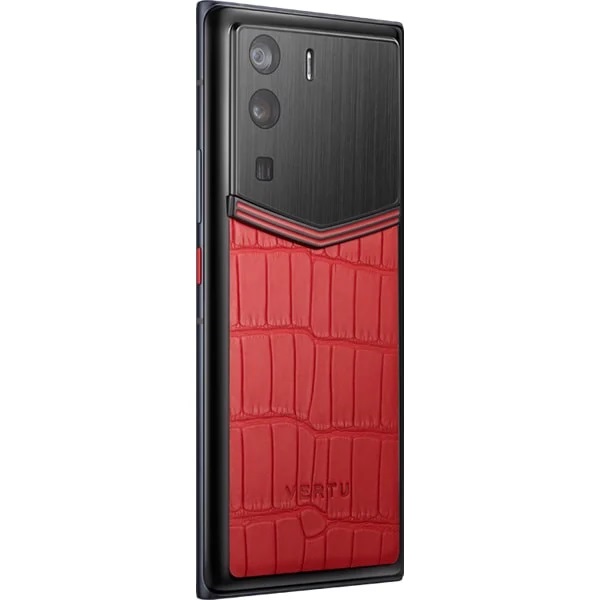 Ngoài ra điểm nhấn còn nằm ở tấm da cá sấu cao cấp ở phần lưng máy. Tấm da được nhuộm màu đỏ nổi bật, tạo điểm nhấn cho sản phẩm. Trên tấm da còn được in chìm tên thương hiệu Vertu sang trọng, đẳng cấp.