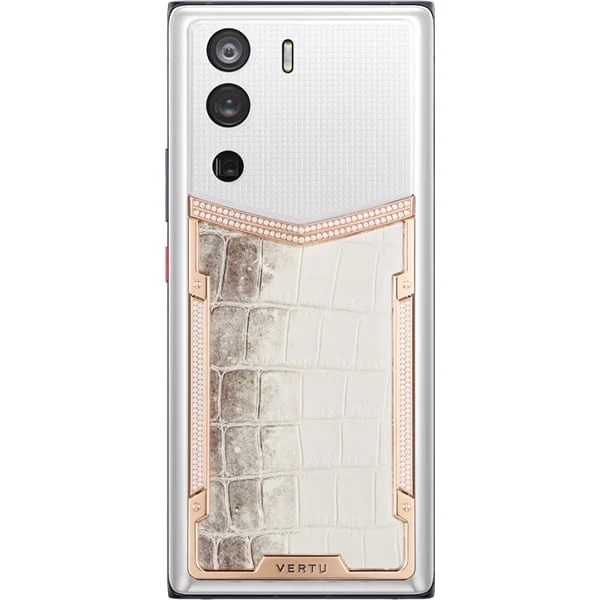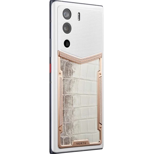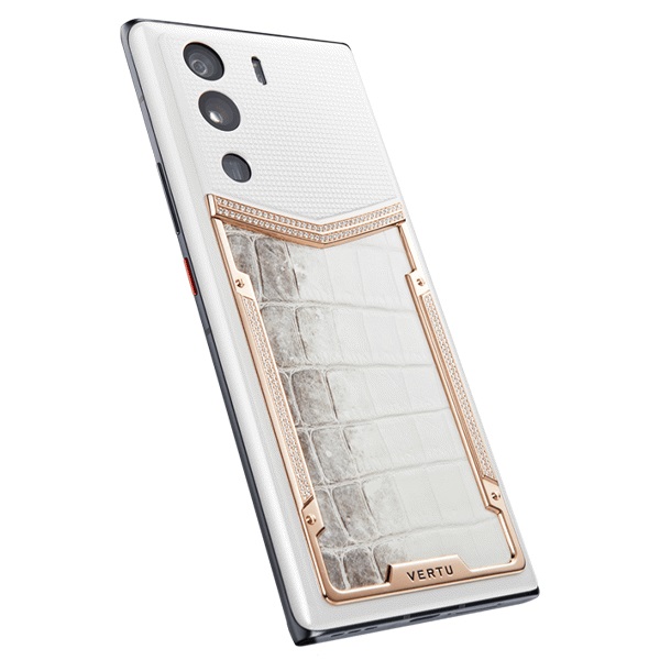 Điểm nhấn của sản phẩm chính là ở mặt sau được thiết kế với tông màu trắng vàng sang trọng. Mặt lưng sở hữu tấm da cá sấu cao cấp từ thương hiệu Jean Russo với mức giá đắt đỏ. Cố định bằng nó là khung được đúc nguyên khối bằng vàng 18K đính kim cương tự nhiên. Tổng thể các chi tiết hòa quyện với nhau tạo thành siêu phẩm đẳng cấp có 1-0-2. Đồng thời chi tiết này cũng giúp khách hàng nhớ về những siêu phẩm điện thoại Vertu Signature làm nên tên tuổi thương hiệu.