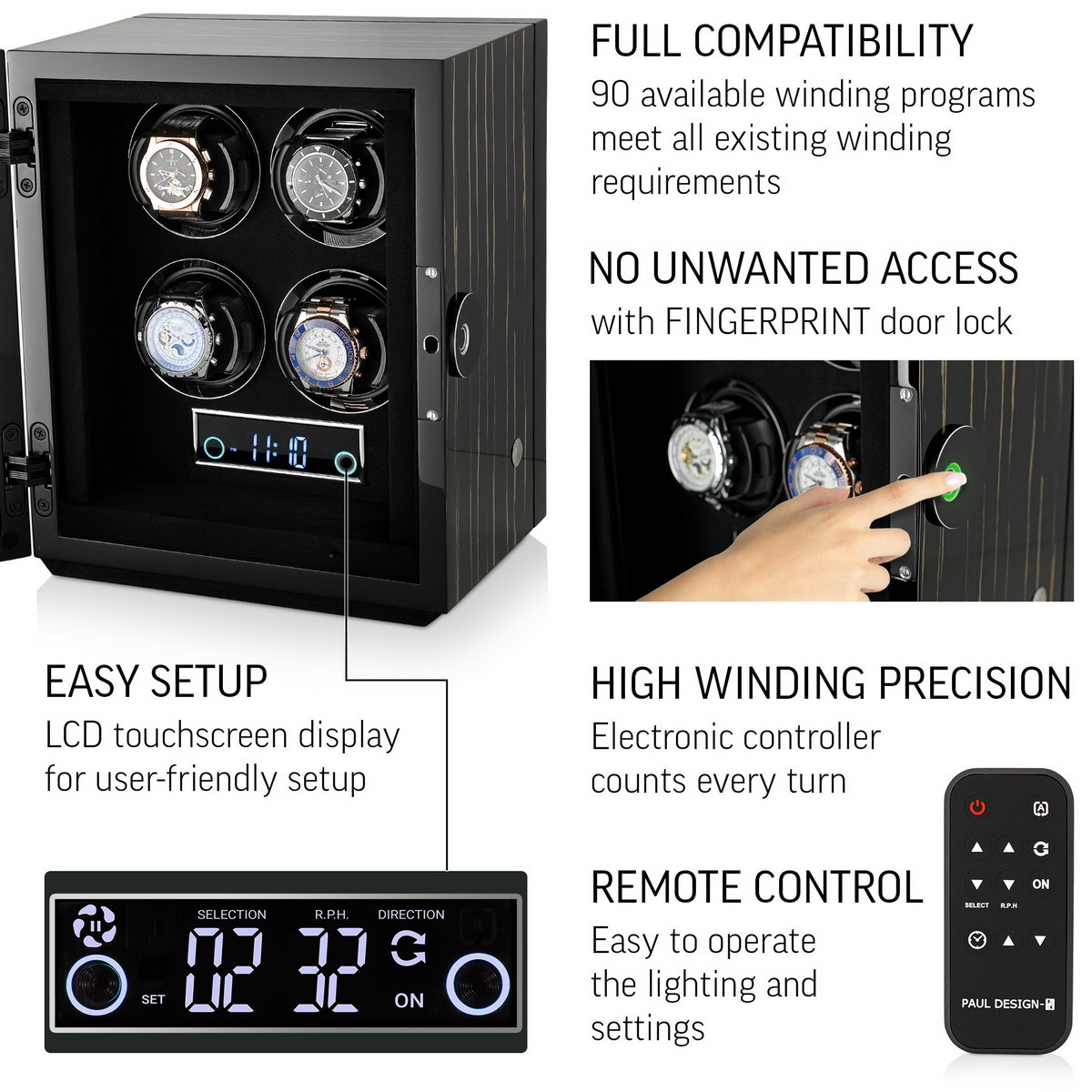 XUẤT HIỆN VƯỢT TRỘI: Máy đánh dây đồng hồ với lớp hoàn thiện có độ bóng cao và lớp lót bằng gỗ đầy phong cách sẽ phù hợp hoàn hảo trong mọi nội thất.