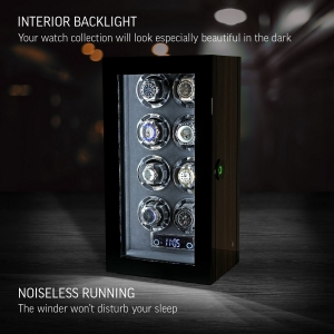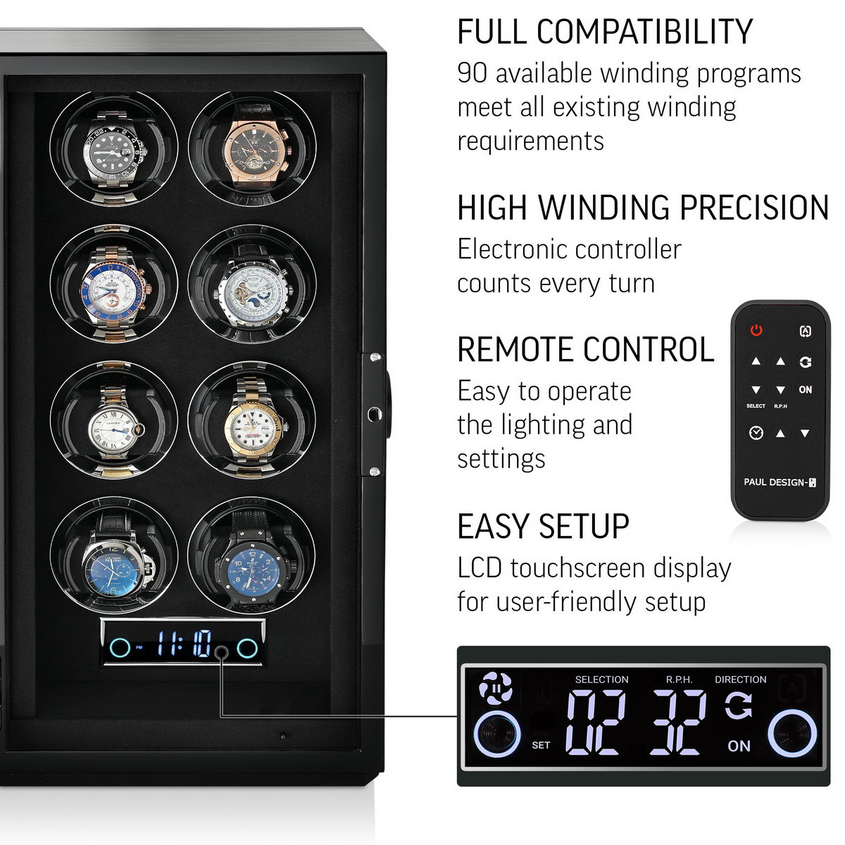Bộ Winder Đồng hồ Cao cấp của Paul Design với Khóa vân tay, Đèn LED nội thất và Vị trí dừng rôto dọc