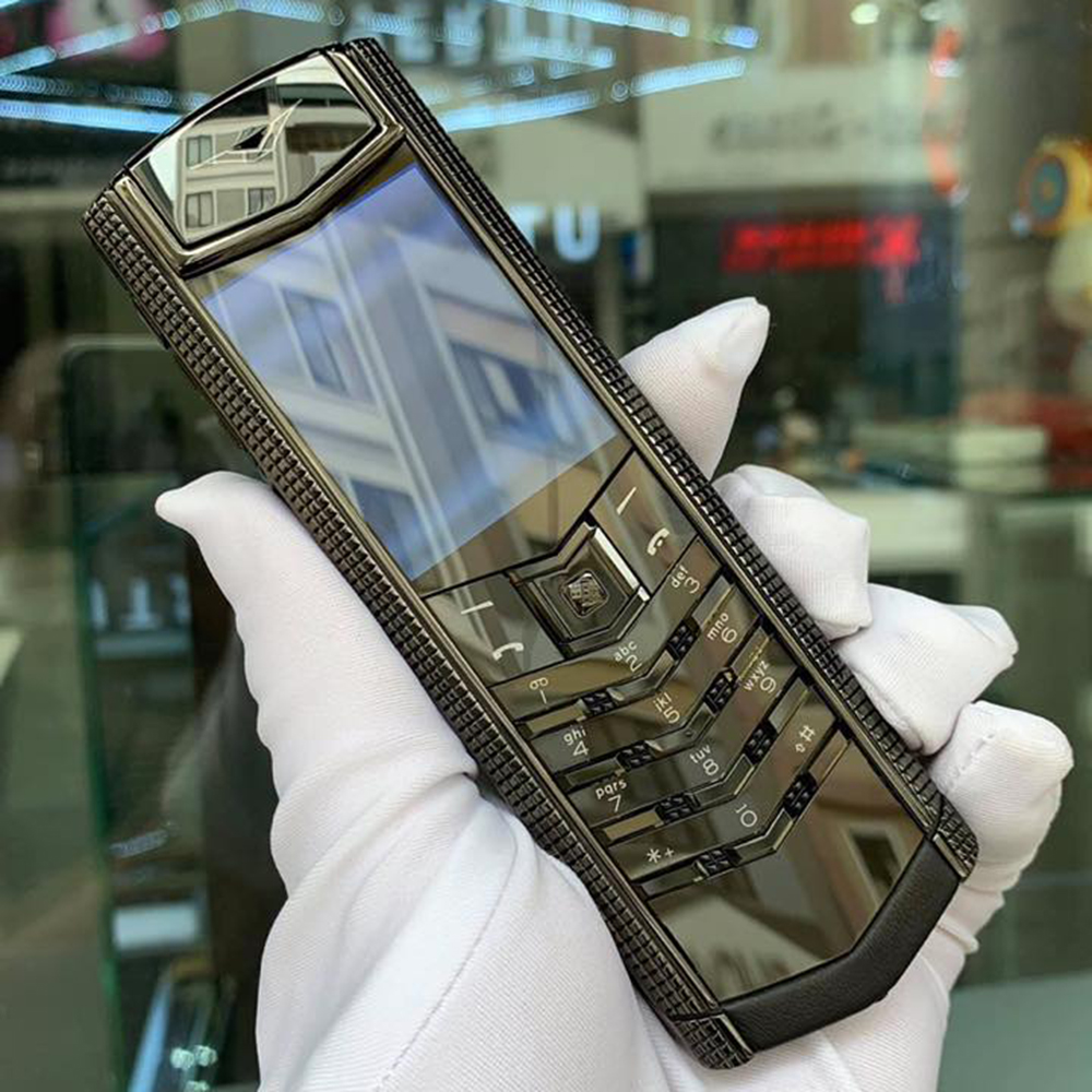 Vertu Signature S Clous de Paris Steel Black tạo ra nét bí ẩn, quyền lực quyến rũ bởi thiết kế đen bóng ánh vàng. Những hoa văn hình vuông được gia công tỉ mỉ bằng tay tuyệt đẹp mang lại dấu ấn cực kì đặc biệt mỗi khi người ta nhắc đến tên dòng Clous de Paris. Vỏ khung là chất liệu thép không gỉ mạ đen ánh vàng cực kì bền bỉ và chau chuốt. Phần vỏ thép chất lượng được đánh bóng kì công nhiều lần cho một độ sáng bóng tuyệt đối.